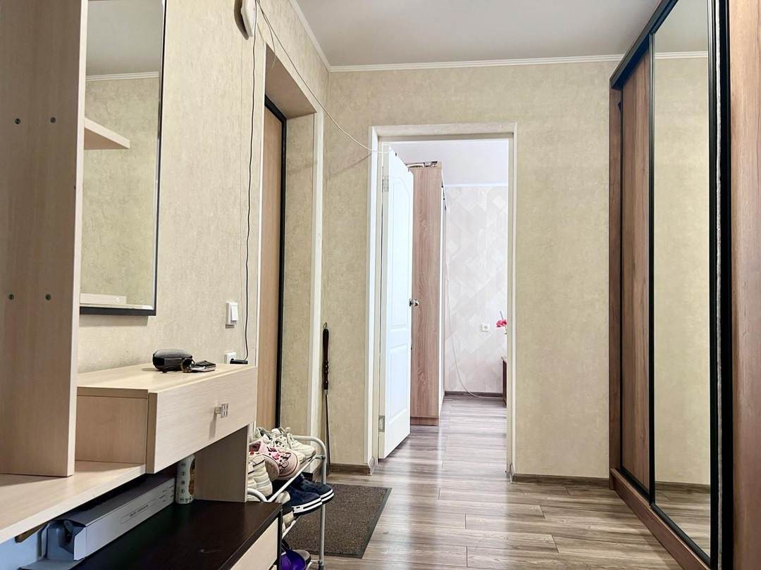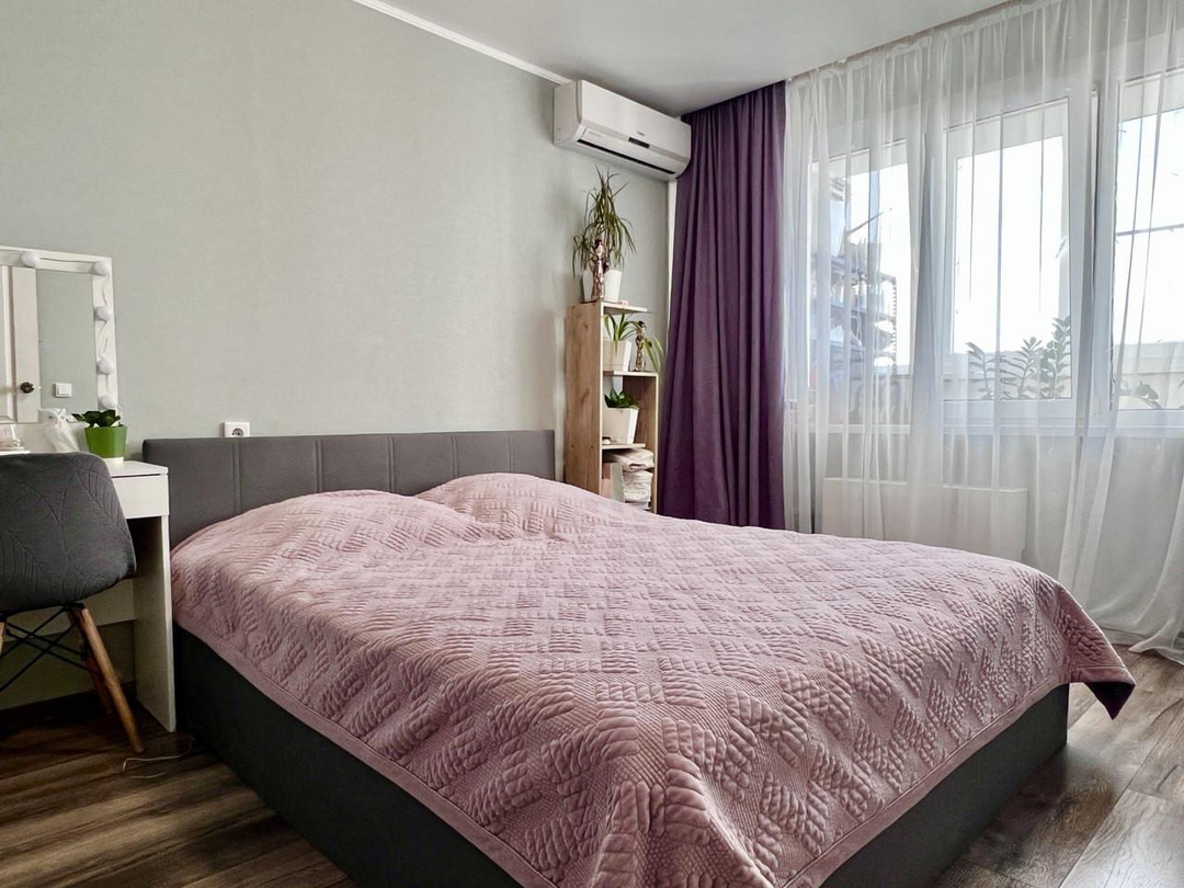 Полноценная двухкомнатная квартира на 15 этаже, с просторной кухней и двумя спальнями.