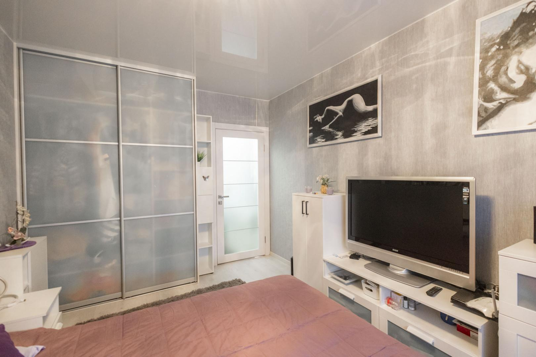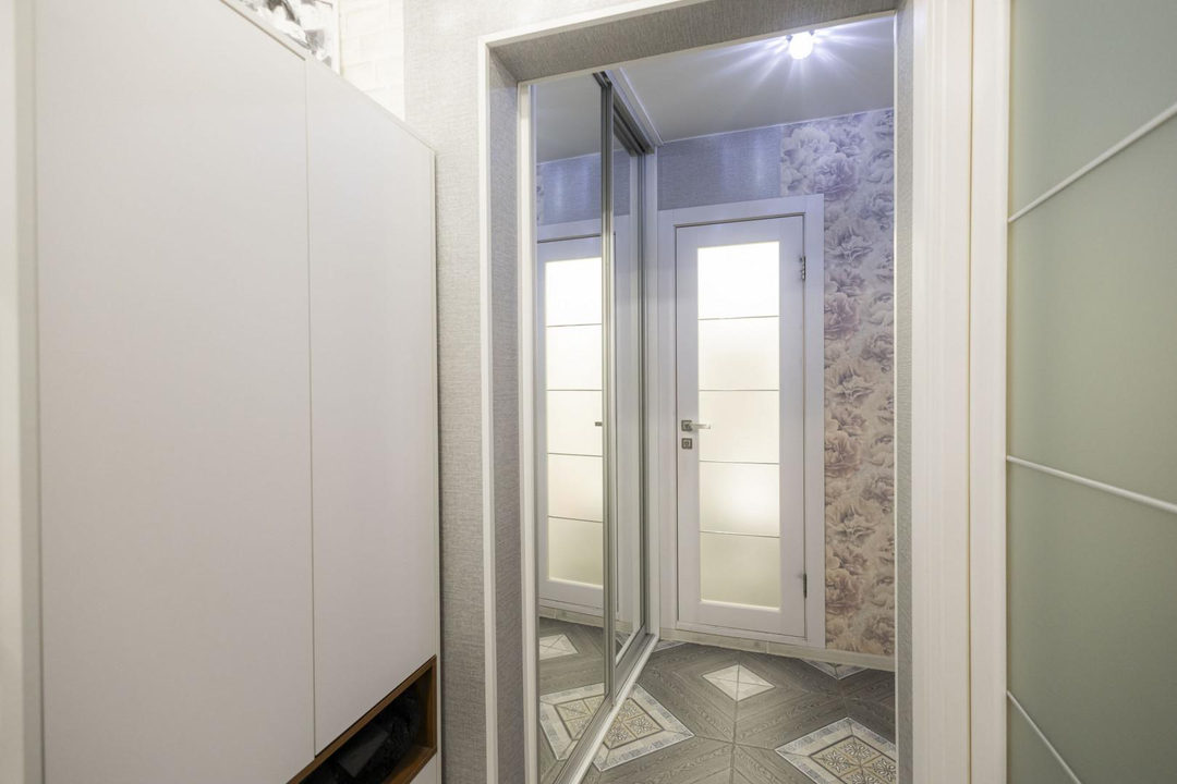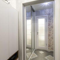 Для хранения ваших вещей предусмотрены два встроенных шкафа с зеркальными поверхностями. Они не только функциональны, но и визуально расширяют пространство, наполняя его светом и легкостью.