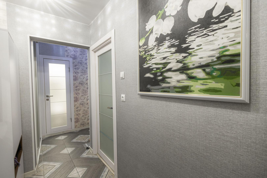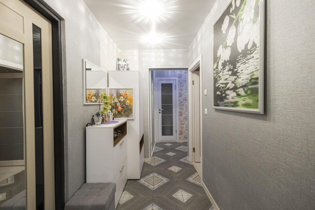 В этой квартире каждая деталь продумана до мелочей. На полу в коридоре, кухне, ванной и санузле – роскошная керамогранитная плитка, которая дарит ощущение прохлады и элегантности. В зале и спальне – теплый и уютный ламинат, создающий атмосферу домашнего тепла. Натяжные потолки добавляют простора и света, а стены, оформленные в уникальном стиле, подчеркивают ваш безупречный вкус.