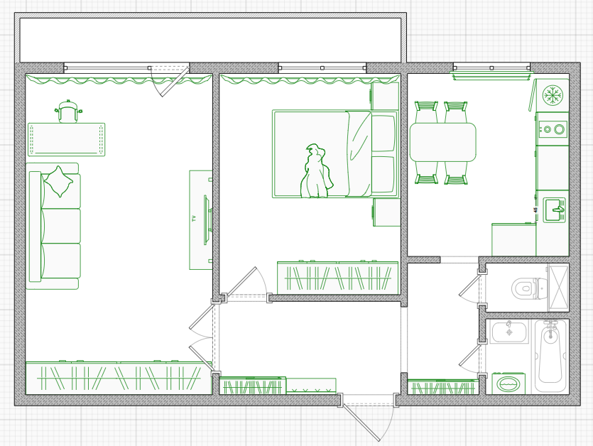 Не смотря на то, что дом находится на одной из оживленных улиц города, в квартире тихо за счет того, что дом смещен в глубь квартала и окна выходят во внутренний двор.