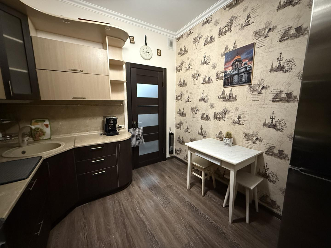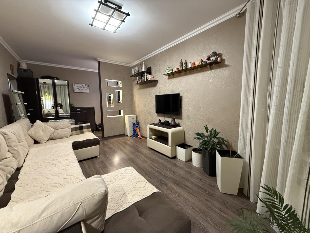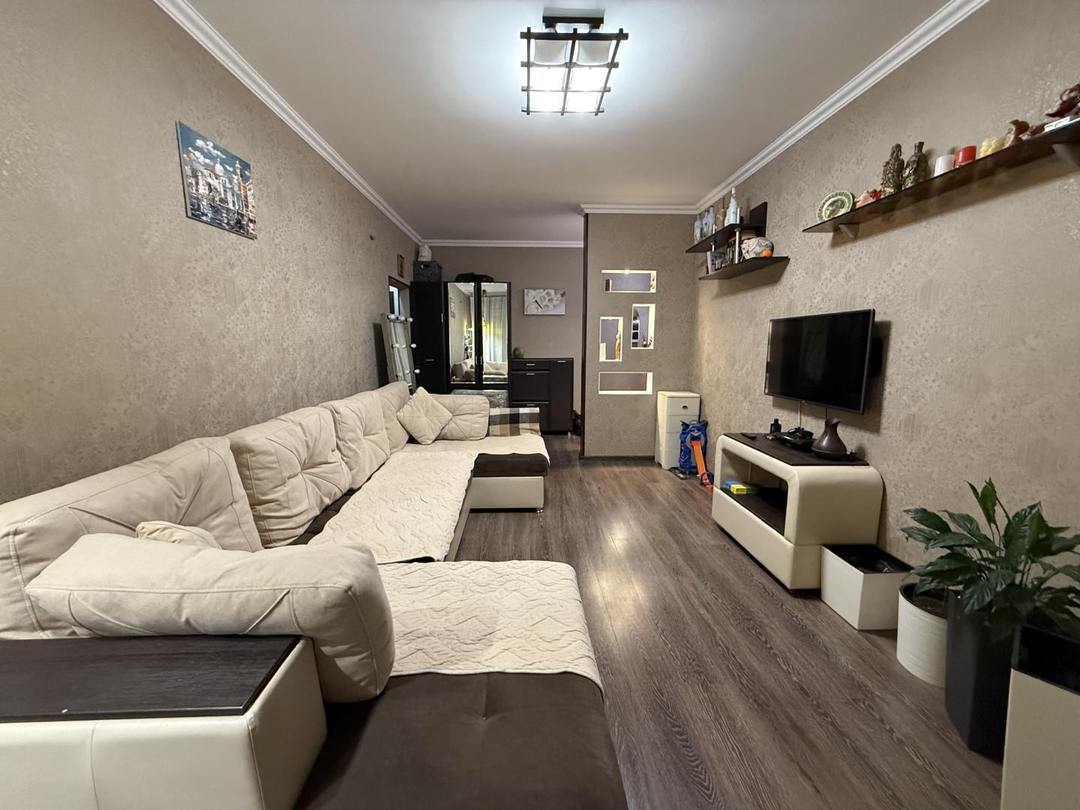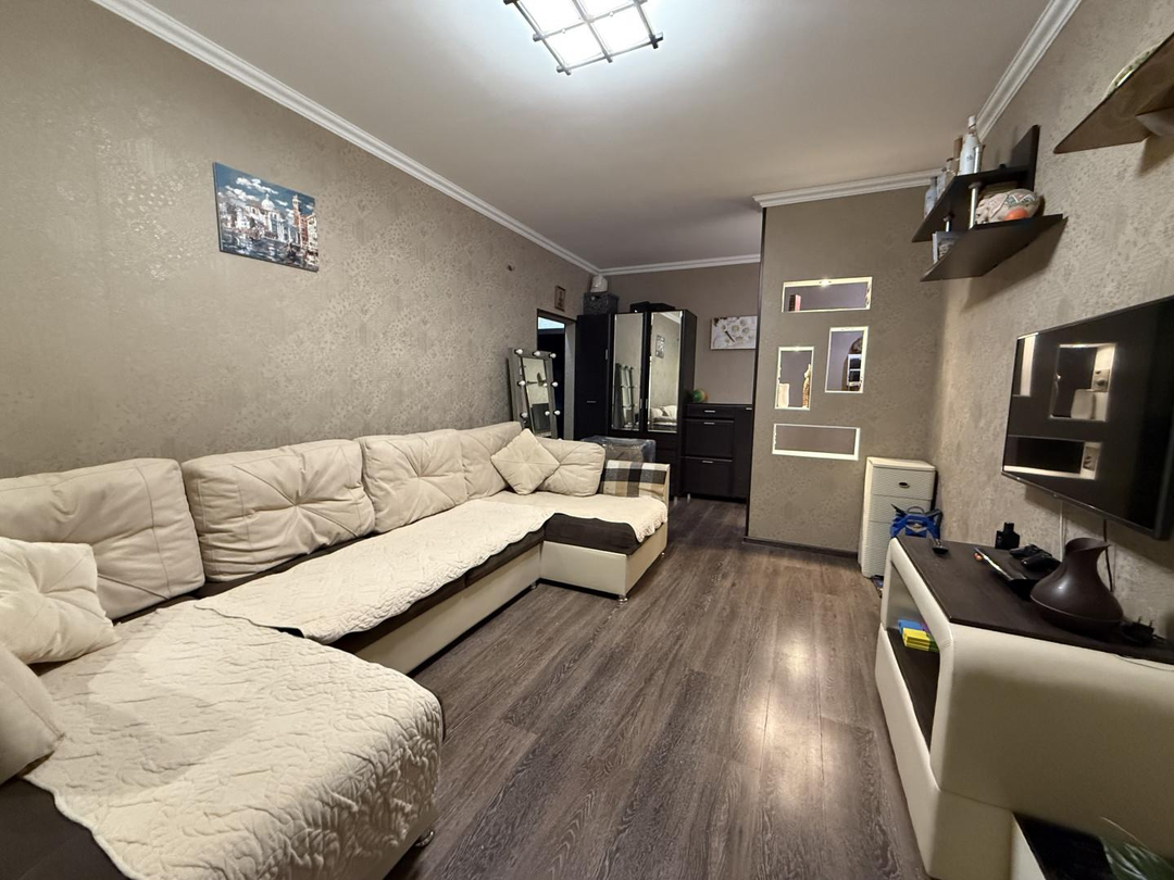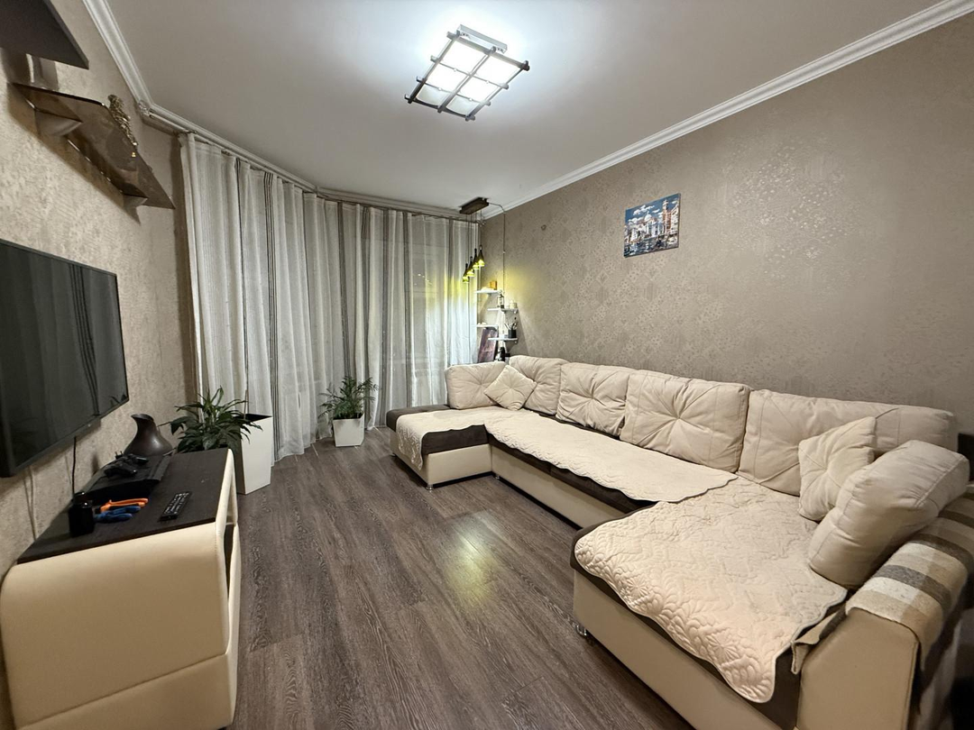 Напольное покрытие ламинат Стены оклеены обоями Санузел кафельПри продаже останется мебель, техника, кухонный гарнитурБлагоустроенный район в центре города с подземными парковками Возможна покупка в ипотекуЮридическое сопровождение сделки и оформление документов