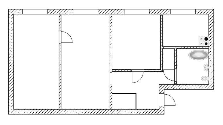 1 Комната (зал) — 17, 4 м, 2 Комната — 9 м, 3-я комната - 11 м, Кухня — 6 м