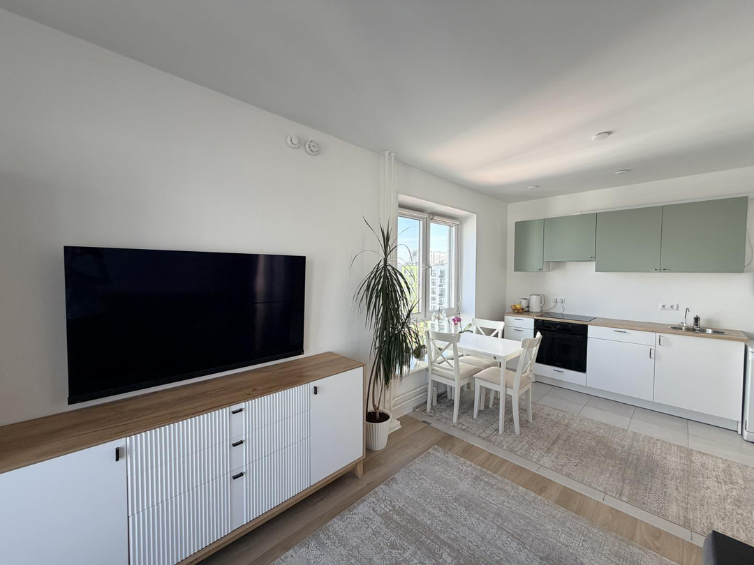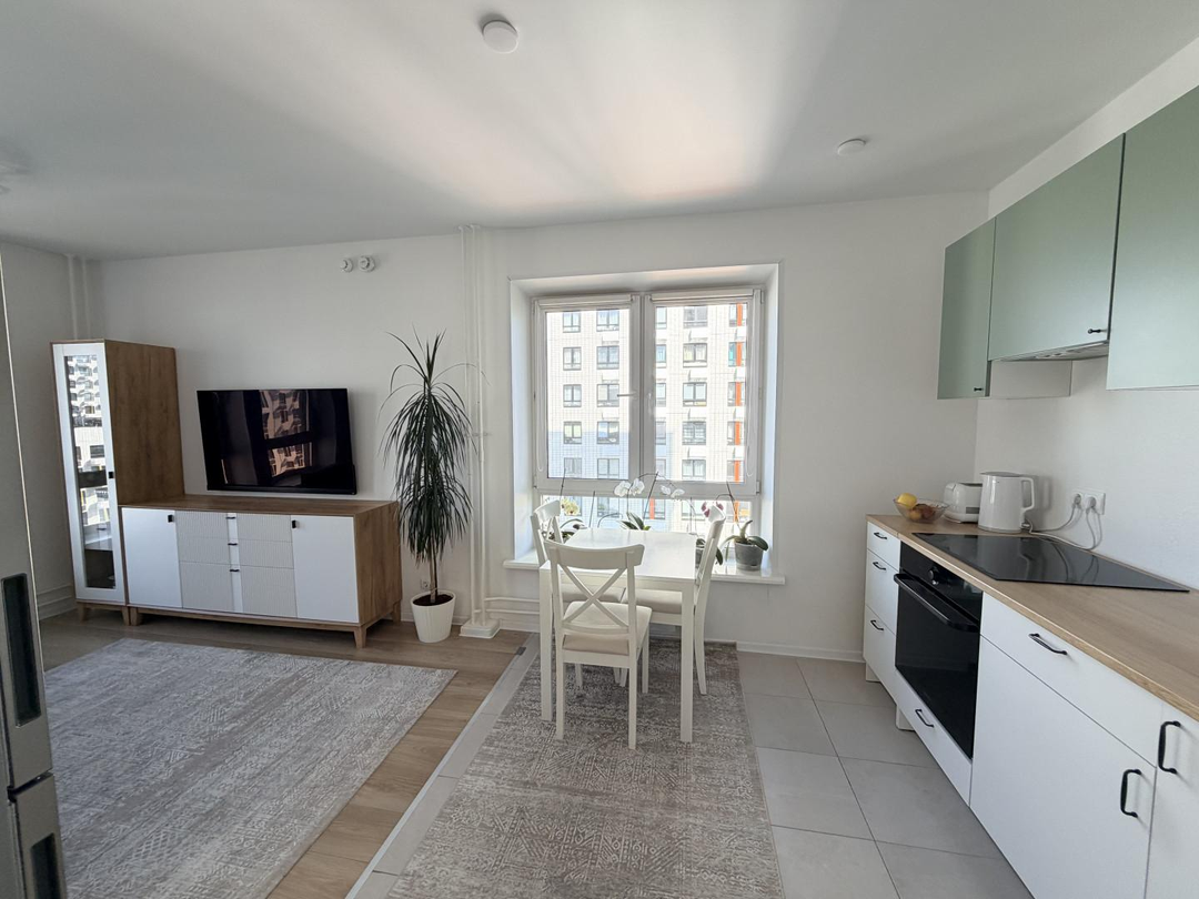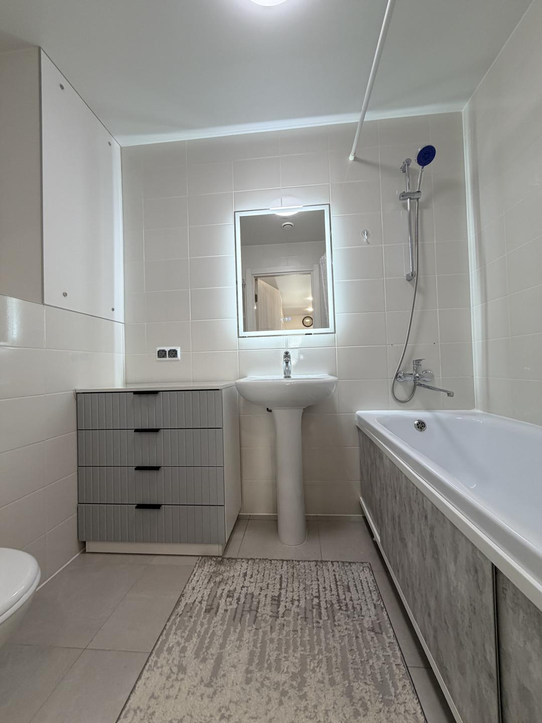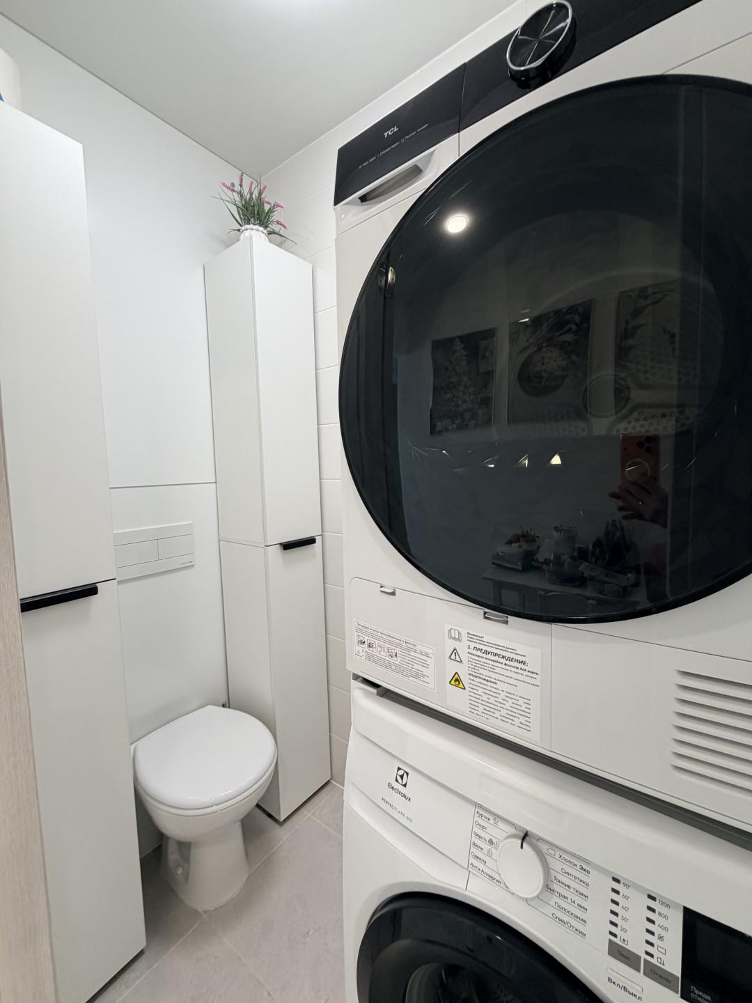Предлагаем Вашему вниманию прекрасную квартиру в современном ЖК комфорт-класса. Просторная кухня-гостиная 20 м , высокие потолки 2.7 м и панорамные окна. В квартире две отдельные комнаты. Санузел раздельный , в одном сушильная и стиральные машины и унитаз, во с втором ванна, унитаз и раковина.