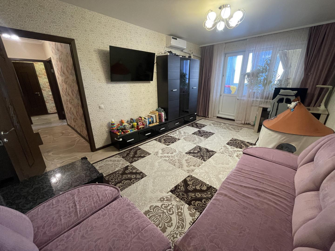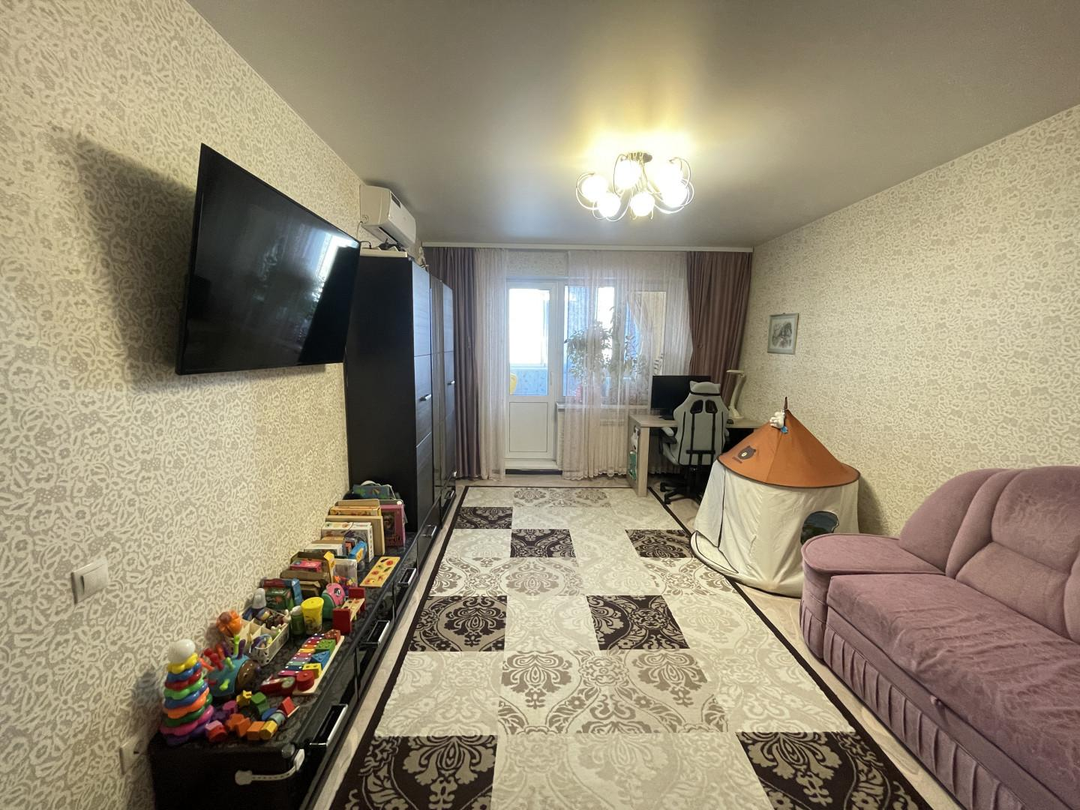 Просторная кухня с вместительным гарнитуром, современной техникой. Уютная гостиная с кондиционером. А большие окна наполняют комнаты естественным светом, будут радовать вас отличными панорамными видами на микрорайон. Изолированные комнаты с местами хранения и увеличенный раздельный с/у. Большой застекленный балкон, а при входе в квартиру нас встречает удобная прихожая с раздевалкой.