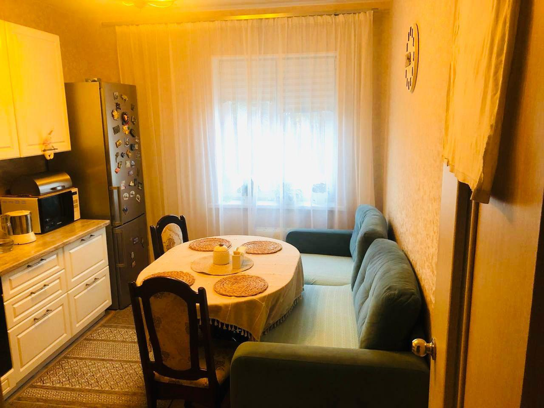 Кухня оборудована всем необходимым для приготовления пищи, включая удобную рабочую поверхность и места хранения.