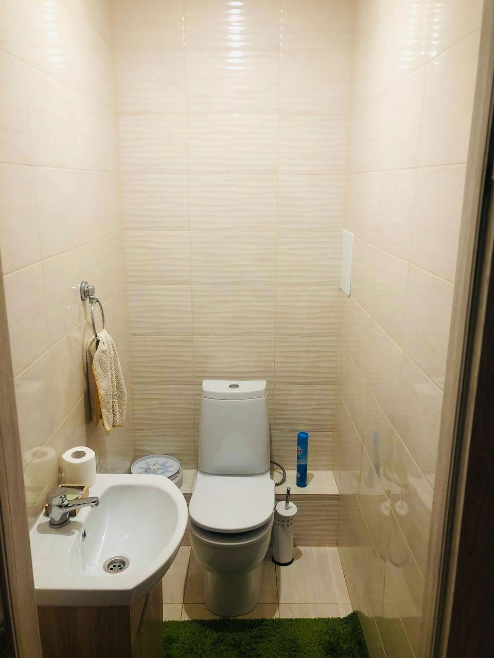 Санузел оснащен современной сантехникой и отделан качественными материалами.