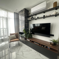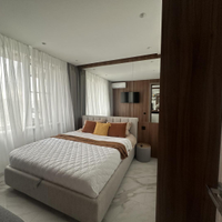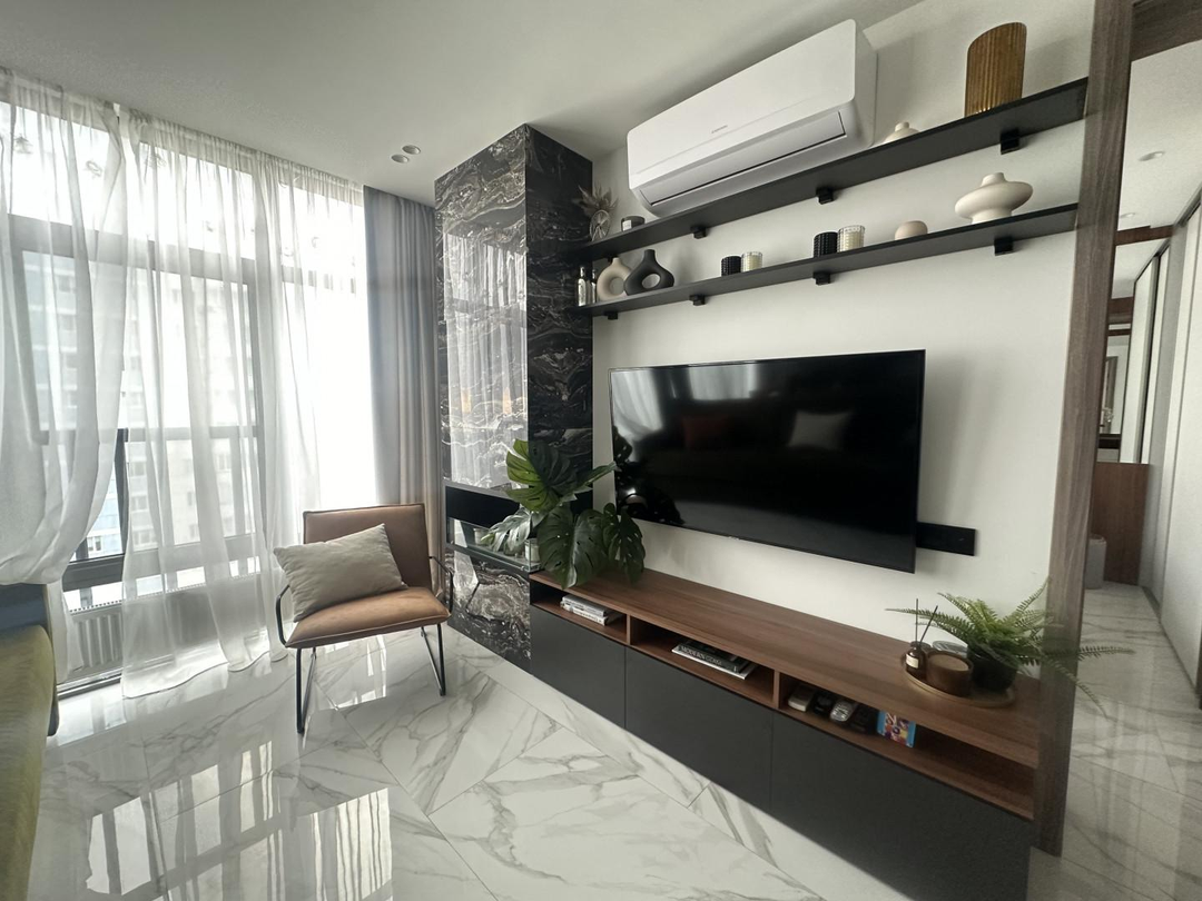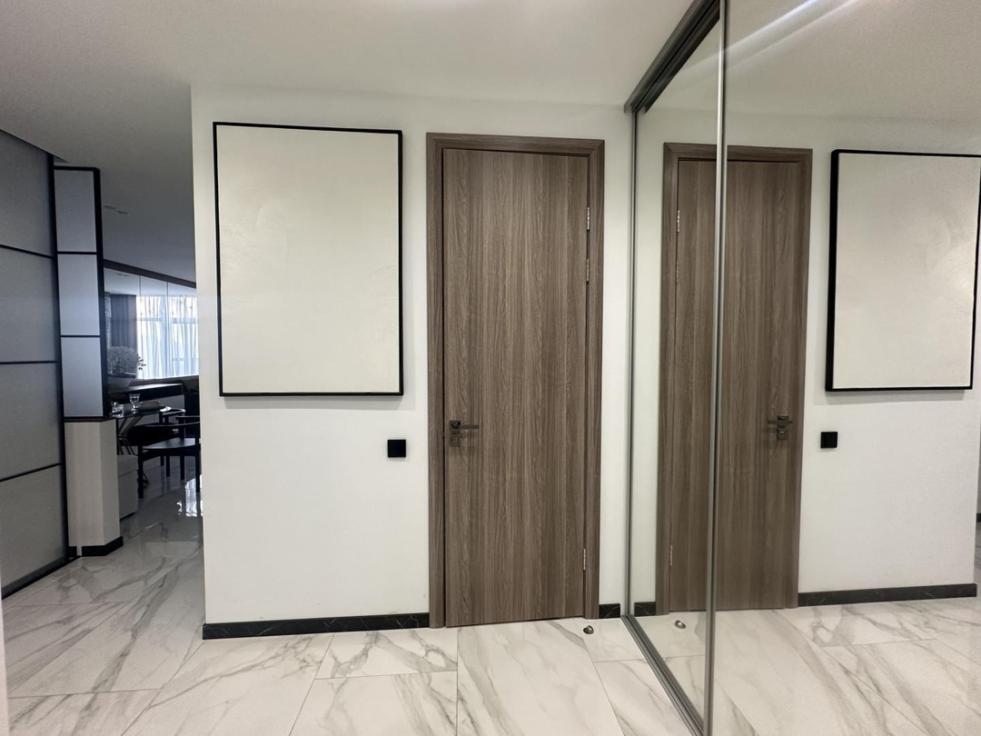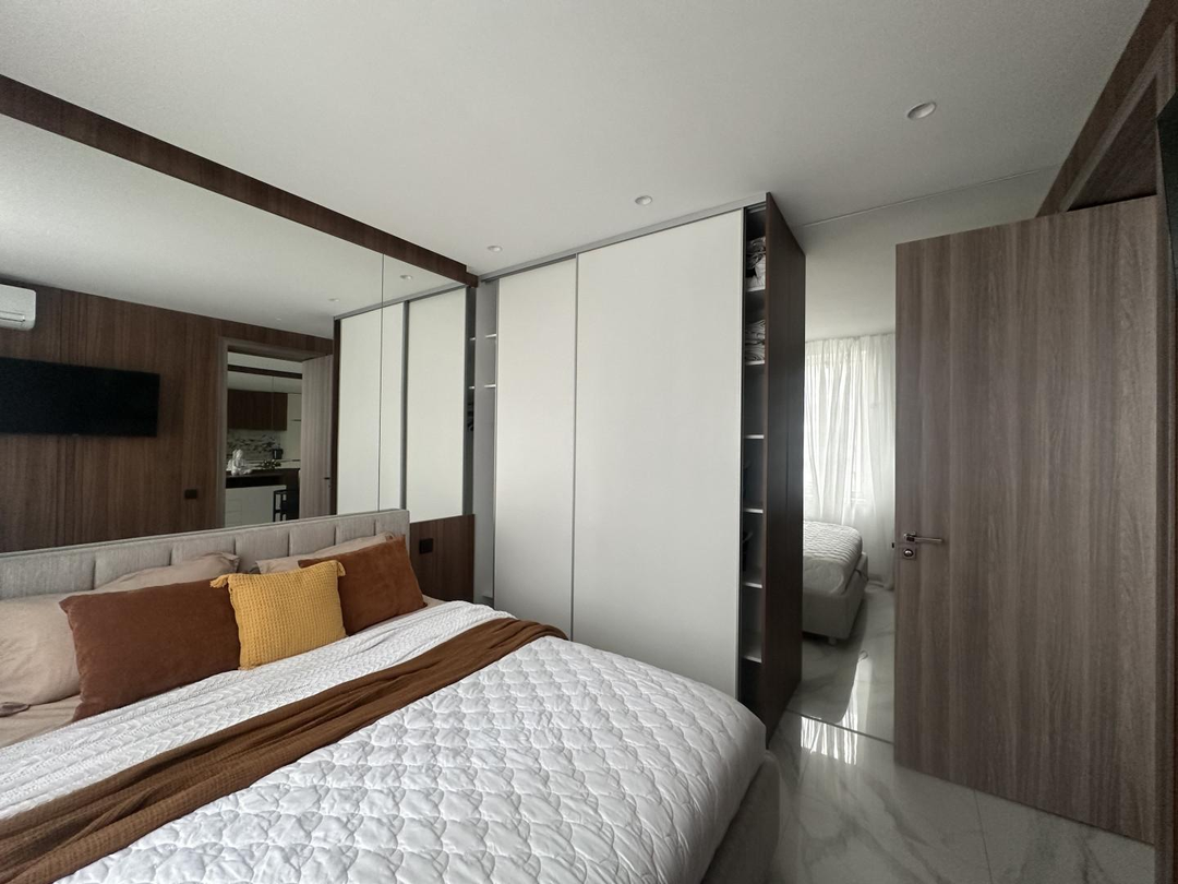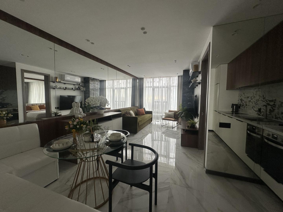 В квартире выполнен шикарный высококачественный ремонт из дорогих материалов под строгим руководством дизайнера! Продумано все до мелочей. Просторная кухня — гостинная, спальня и кабинет. Одна спальня с двухспальной кроватью и вместительным шкафом. Другая спальня небольшая с диваном для гостей, а также можно использовать ее как детскую.