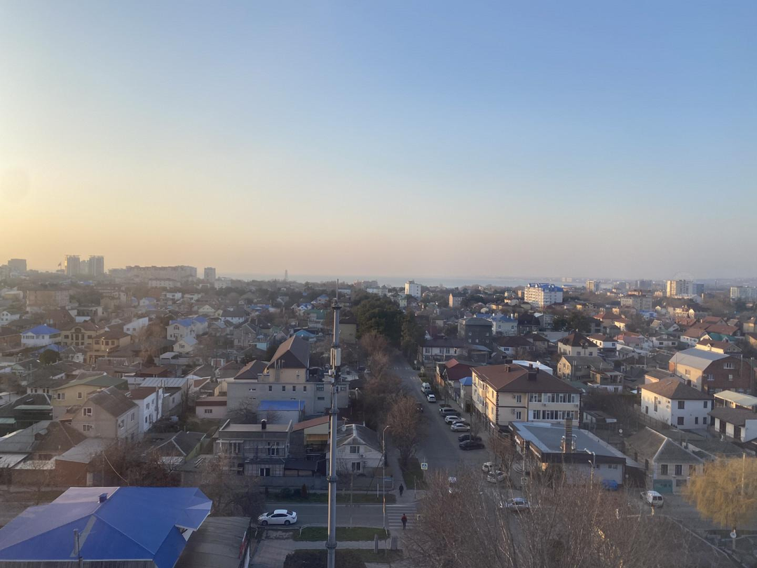 - вид из окна на море и город,
