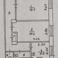 2 изолированные комнаты 16,7м2 + 17,2м2. Просторный холл 7м2.