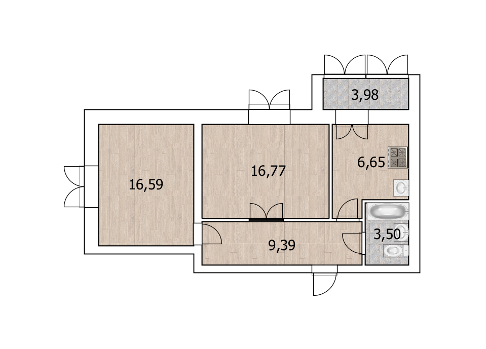 Двухкомнатная квартира, расположенная по адресу: б-р Давлеткильдеева, д 5,5/14 этаж. Общая площадь 56.6 м2.