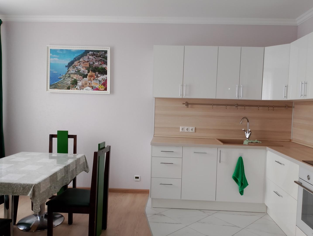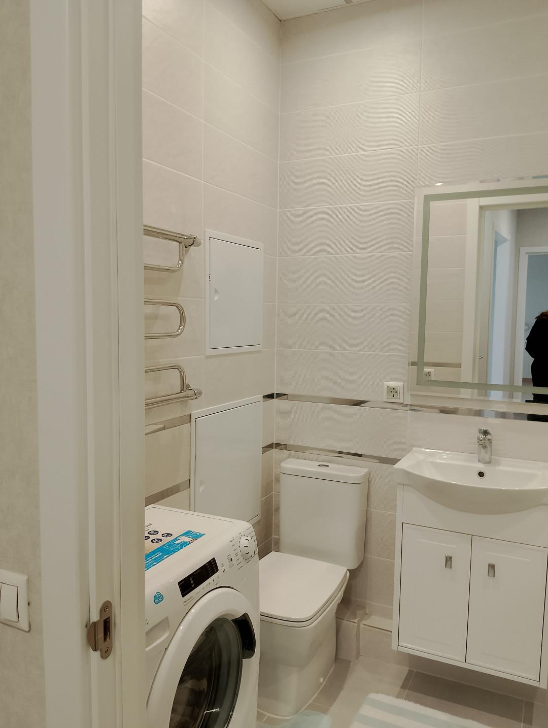 Просторная кухня-гостиная оснащена всей необходимой техникой. В квартире выполнена гидро и шумоизоляция. В ванной комнате, прихожей и на кухне установлены тёплые полы.