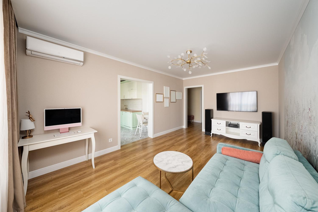 - Качественный ремонт из дорогих материалов, полная меблировка и бытовая техника: кондиционер, водонагреватель и пр. — можно въезжать сразу.