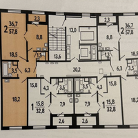 - Общая площадь: 56,6 м²; потолки 2,7 м. Окна на две стороны.