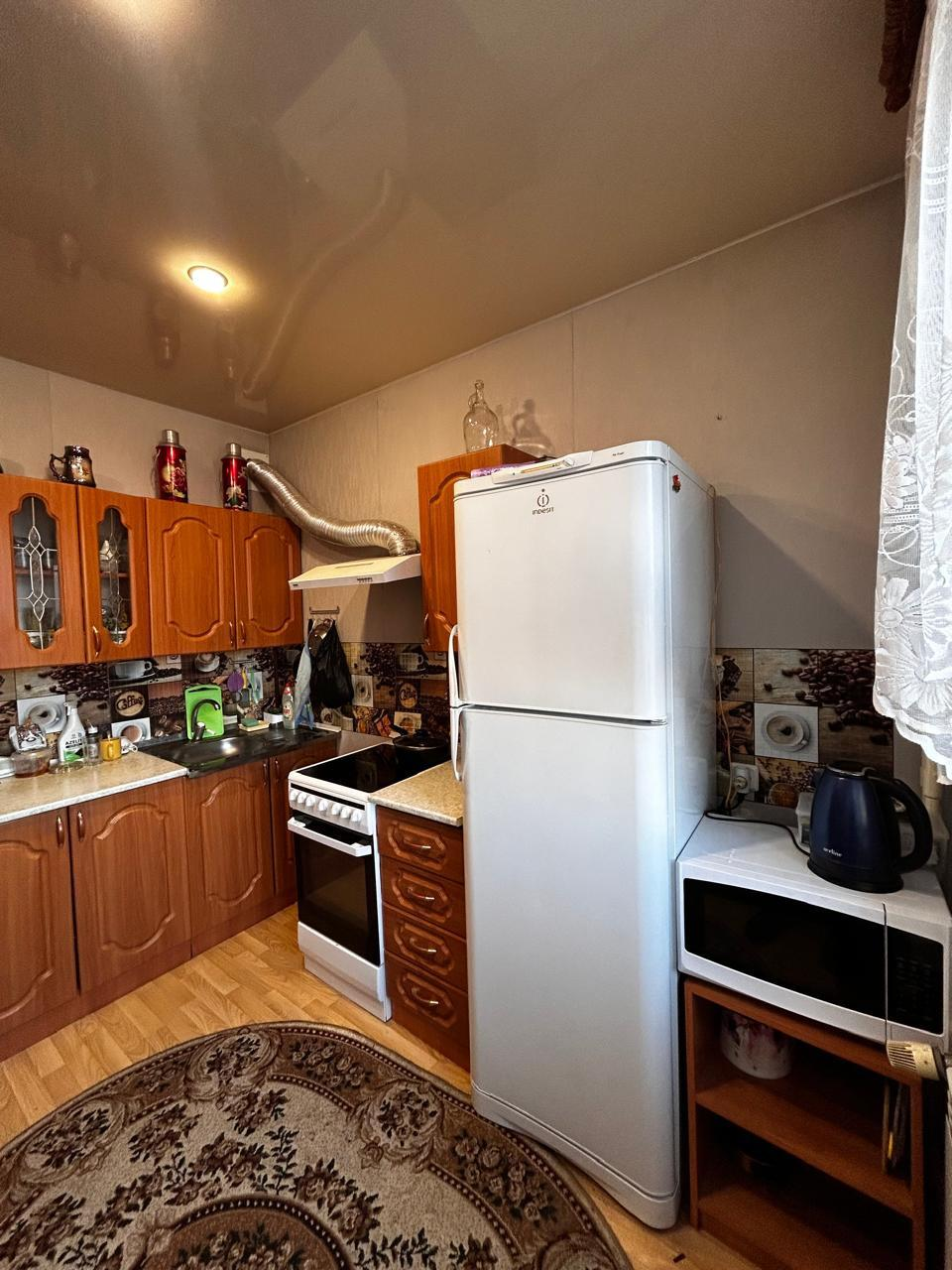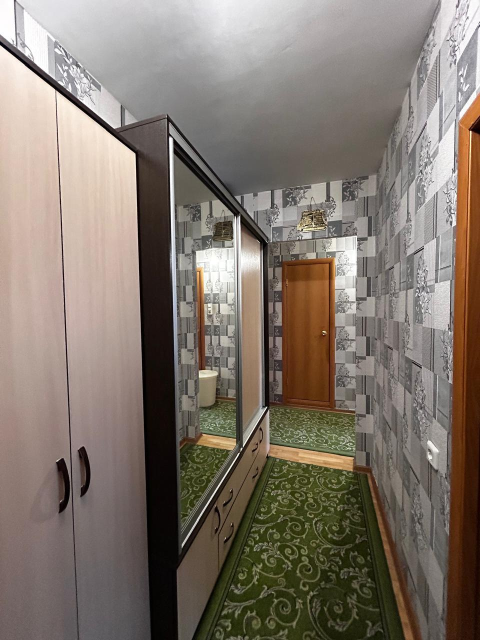 Новому собственнику остается в подарок: кухонный гарнитур, шкаф в спальне, тумба.