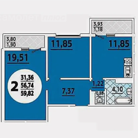 56,8 м²