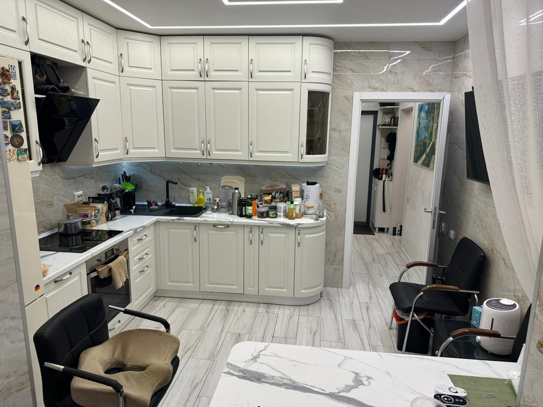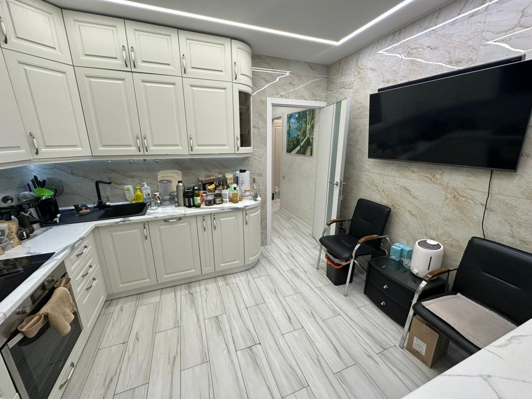В квартире сделан качественный и современный ремонт. Теплые полы, кондиционер в каждой комнате. В квартире два С / У. Вся мебель высокотехнологичная, от производителя ЭГГЕР.