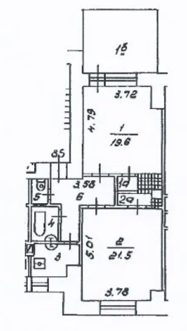 Комнаты изолированные - 19,6 кв.м и 21,5 кв.м.