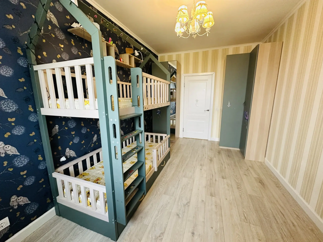 Состояние: отличное, сделан ремонт из качественных материалов. Высокий 24 этаж гарантирует приток свежего воздуха, а из окон открывается прекрасный вид на панораму всего города и лесной массив. В квартире раздельный санузел с полноценной ванной и туалетом. Две просторные изолированные комнаты: детская и взрослая спальня с гардеробной комнатой и выходом на застекленную лоджию, где можно организовать рабочее место или дополнительную зону для отдыха. Современная кухня с продуманной логистикой оснащена качественной техникой. Преимуществом квартиры является замечательный ремонт, организованные места для хранения вещей: полноценная гардеробная комната в спальне и комната-раздевалка в прихожей.