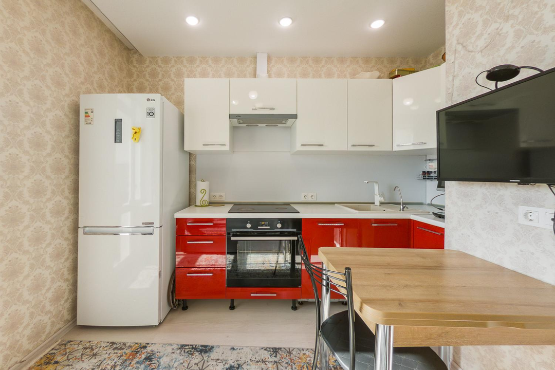 В соседних домах и в шаговой доступности — супермаркеты «Пятёрочка», «Магнит», аптеки, салоны красоты, кофейни, ПВЗ. Множество магазинов на первых этажах.