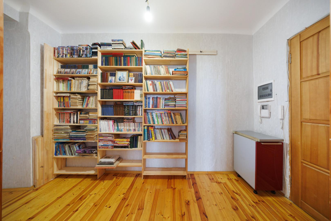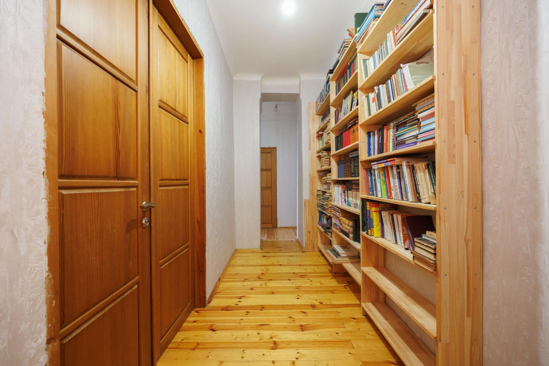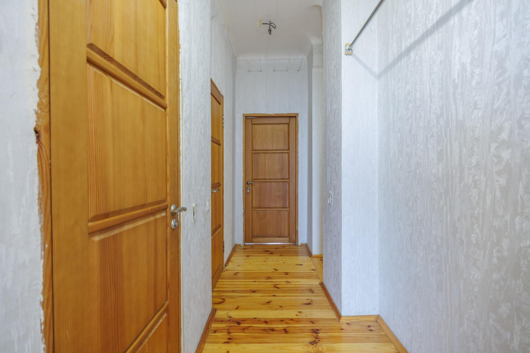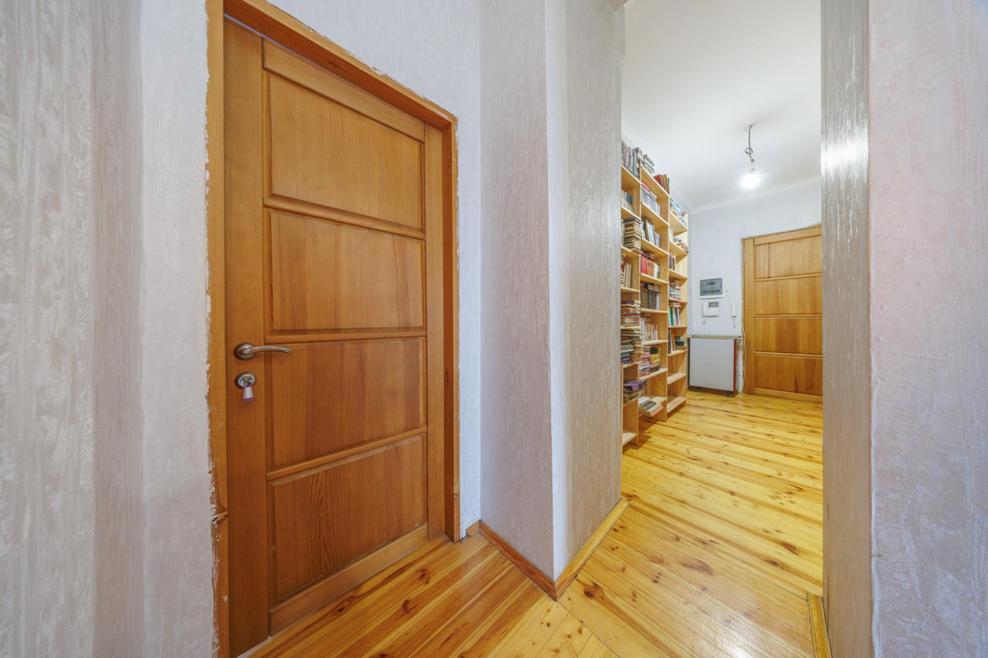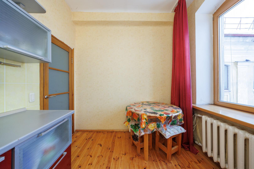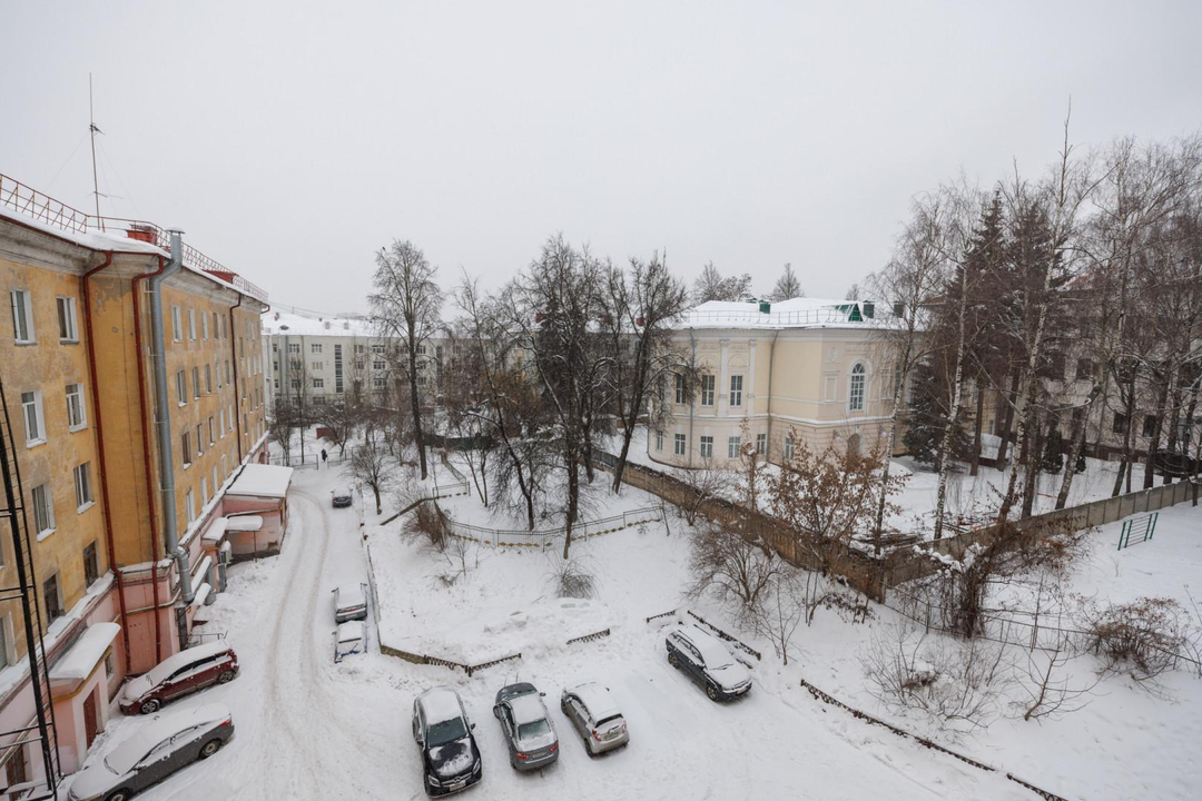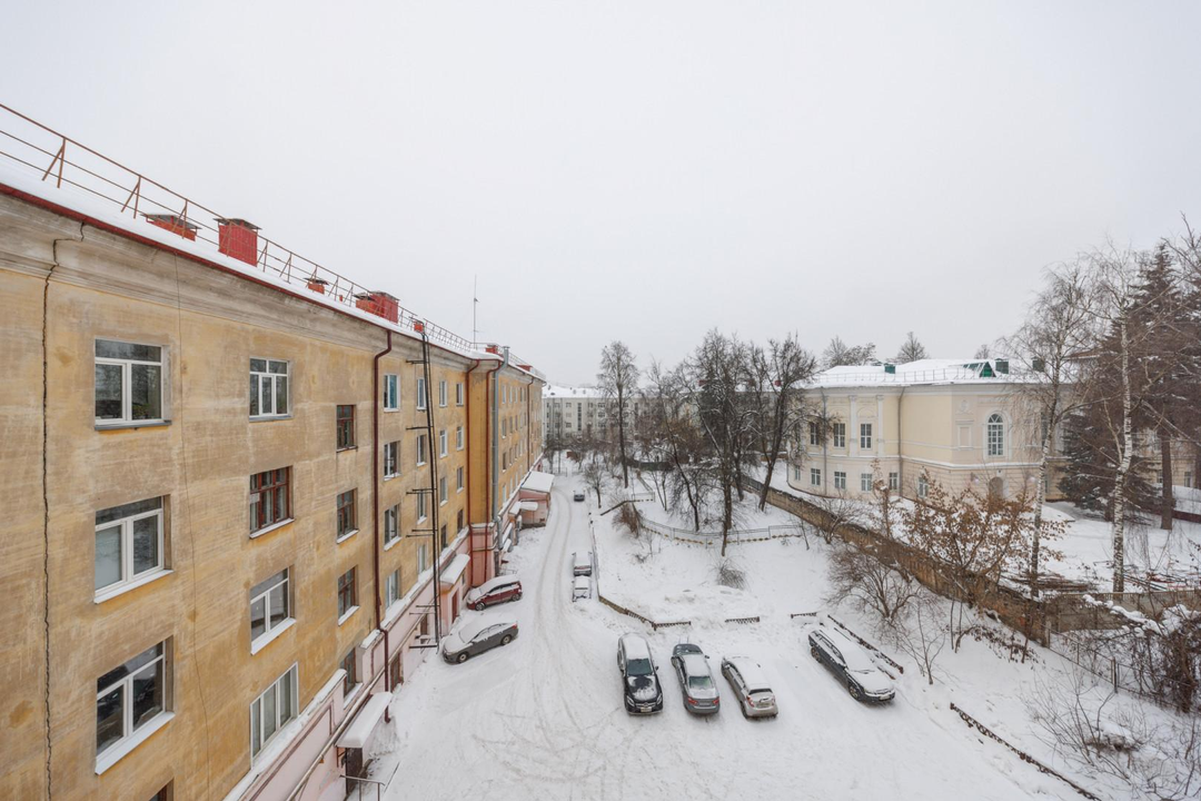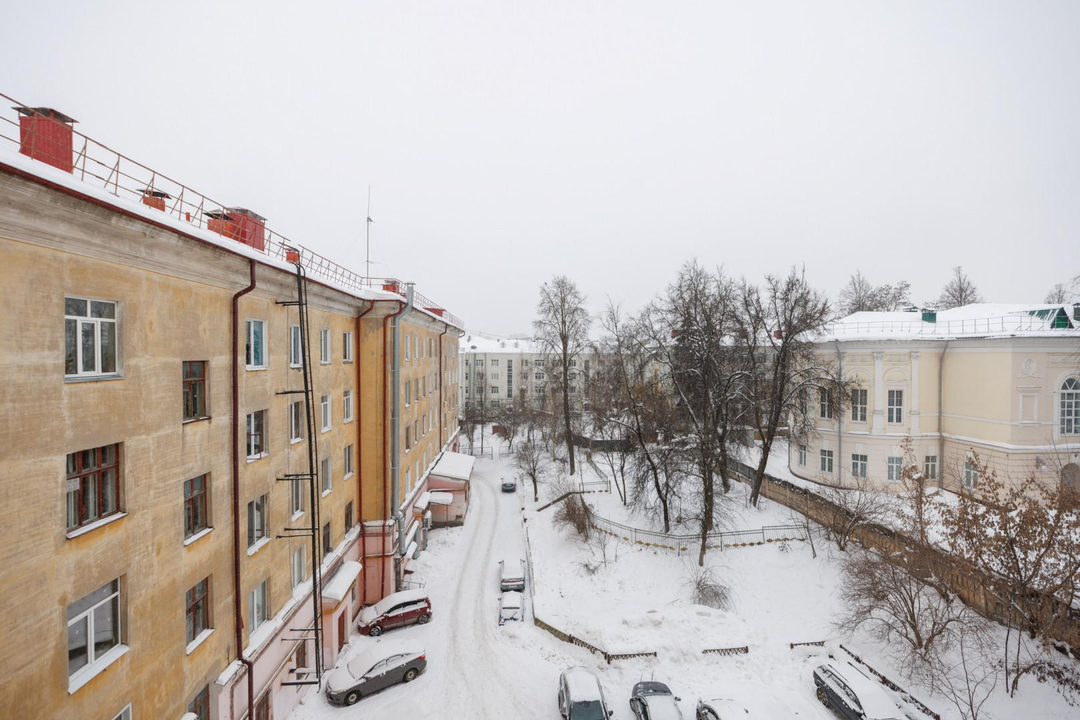Квартира расположена на 5 этаже 5-этажного дома. Сверху нет соседей — дополнительная тишина и ощущение уединённости. Планировка — классическая распашонка: изолированные комнаты, окна выходят на две стороны. Благодаря этому в квартире много естественного света и хорошая вентиляция. Из окон открываются виды на зелёный двор, деревья и историческую застройку — для центра это редкое сочетание.