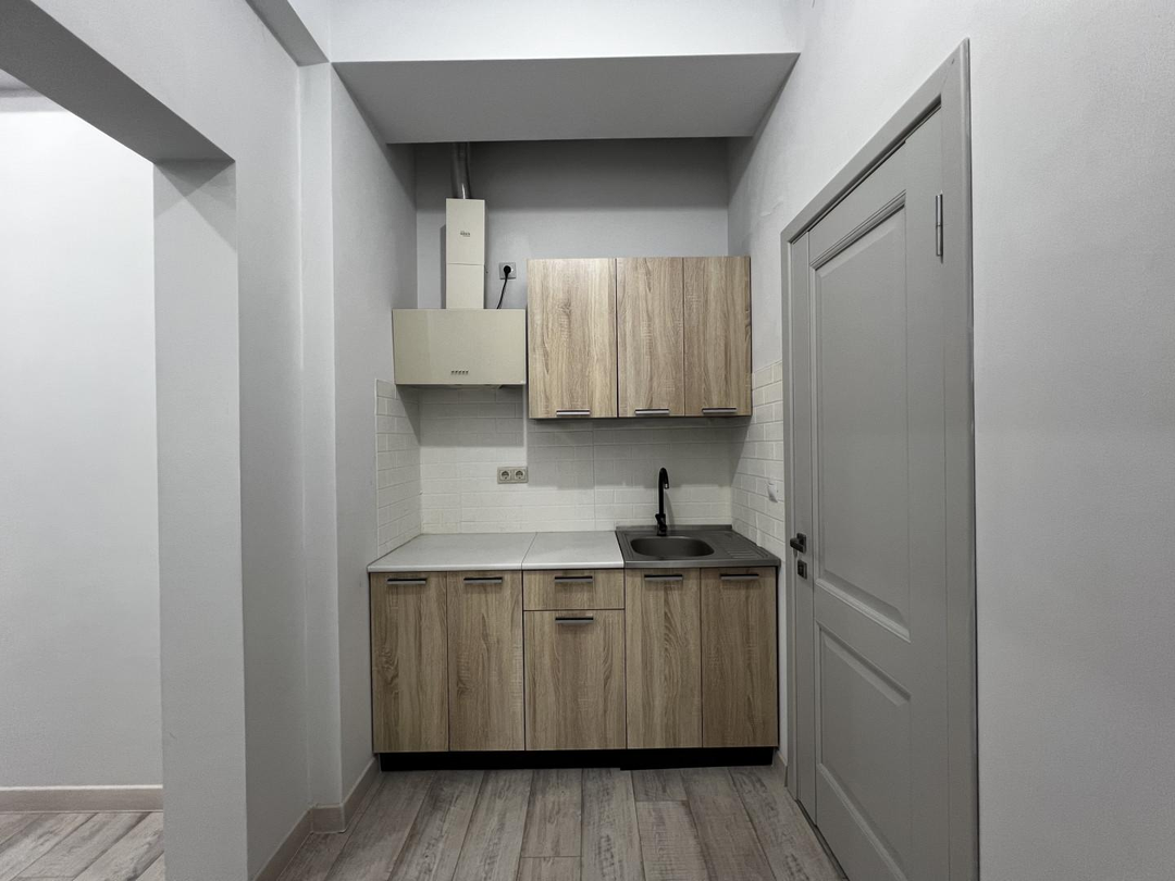 Плюсы квартиры :Удобная и продуманная планировкаСветлая комната с зоной отдыха и обеденной зонойСовременная кухня с мебелью под дерево, большой холодильникПросторная ванная в плитке под камень, новая сантехникаКачественный ремонт в спокойных светлых тонахУстановлены пластиковые окна, тихие соседи