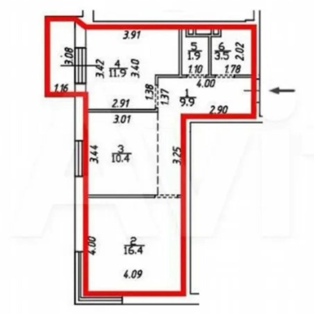 общая площадь — 57 м²;