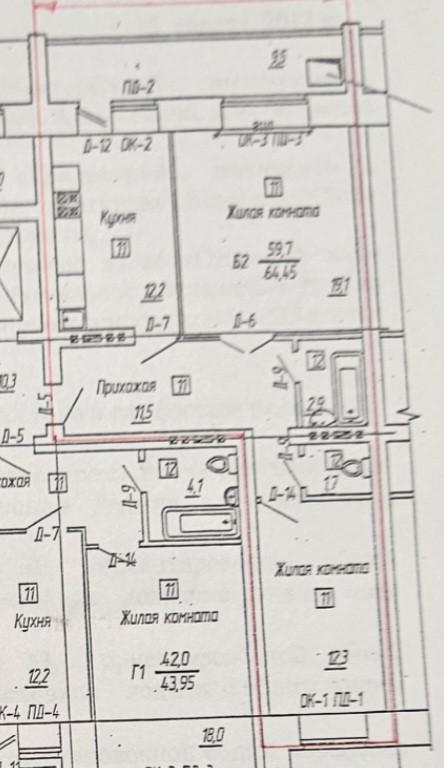 Общая площадь - 64,45 кв.м.