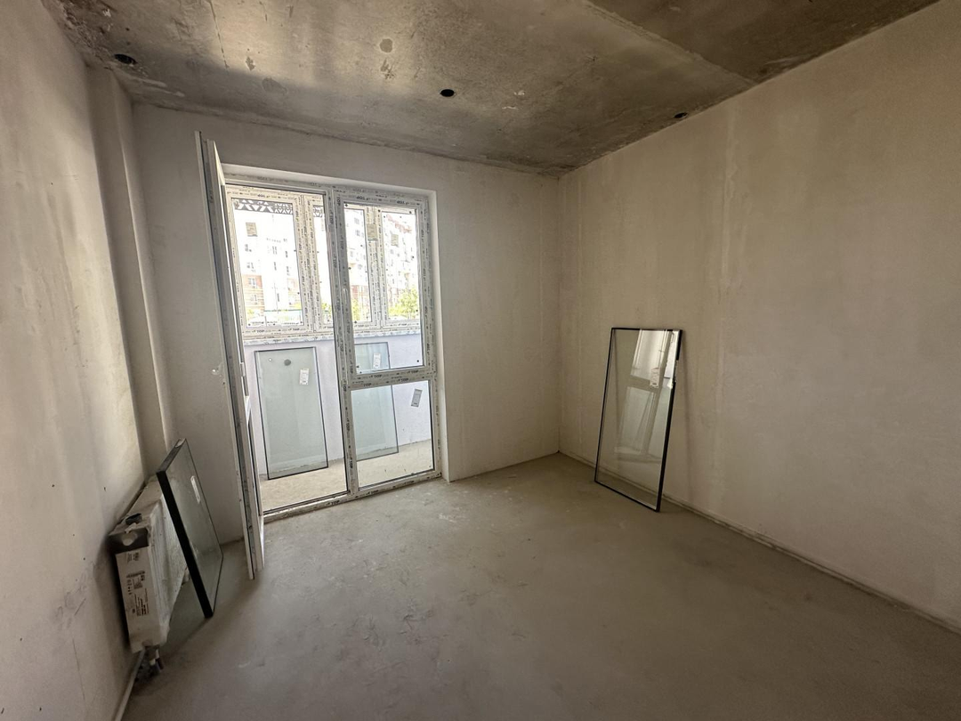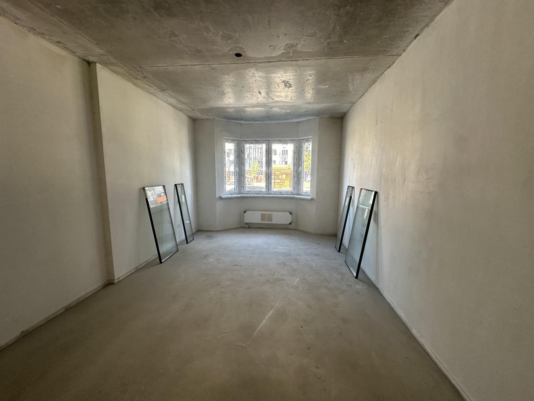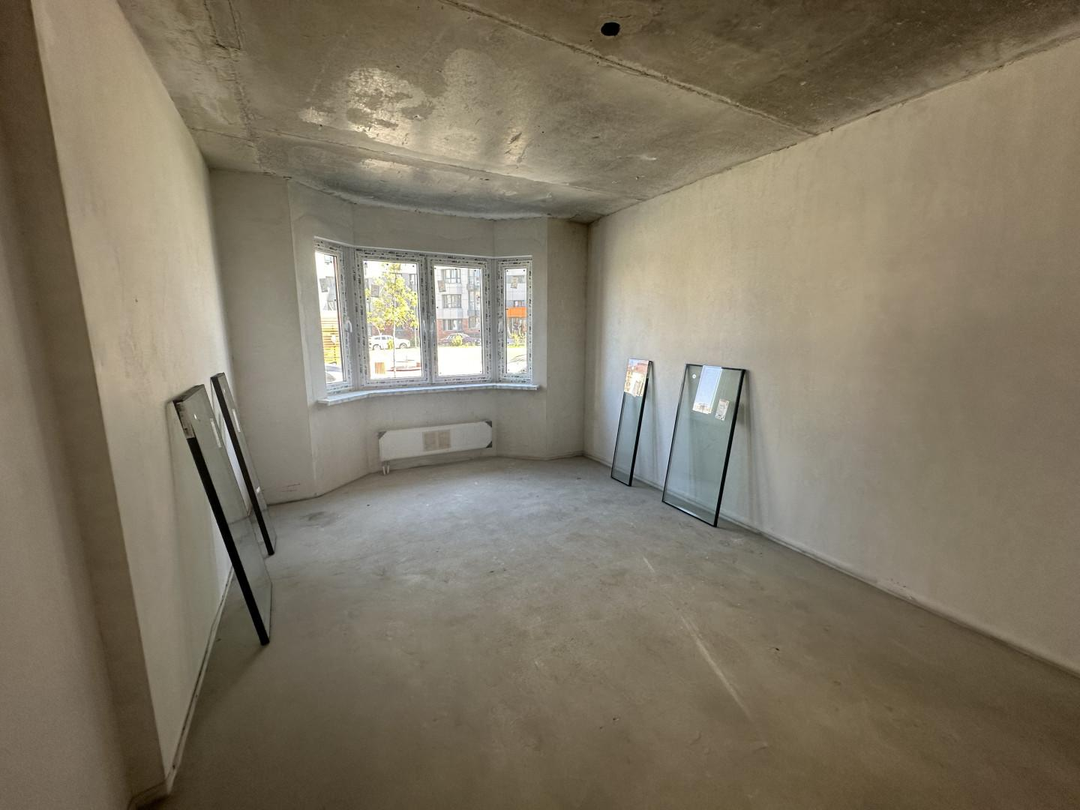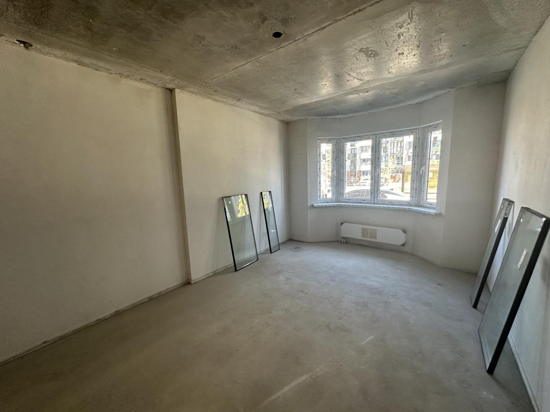 Квартира в предчистовой отделке. Пол стяжка стены штукатурка! Заведена электрика по проекту! Выводы сантехники канализация и вода. Квартира просторная комнаты светлые и уютные! Вид из окна двор. Первый этаж используется для сдачи посуточно или долгий срок.  Зал с эркером. Есть лоджия застекления.