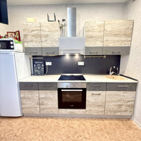 —Просторная кухня с кухонным гарнитуром