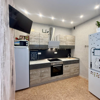 В ЖК много садиков, 3 школы, центры развития, спортзалы, МФЦ, поликлиника, больница, есть платные парковки, частные мед.центры, кафе, много продуктовых магазинов и аптек 24/7.