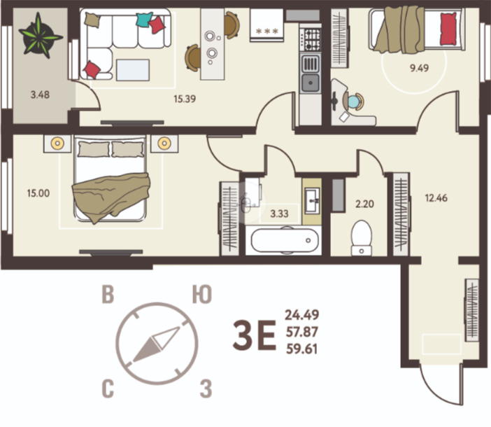 Продаётся двухкомнатная квартира (3-е) в ЖК "Инстеп Механизаторов" с просторной кухней-столовой площадью 15,39 кв.м. Квартира без отделки, новый собственник может сделать ремонт по своему дизайн-проекту.