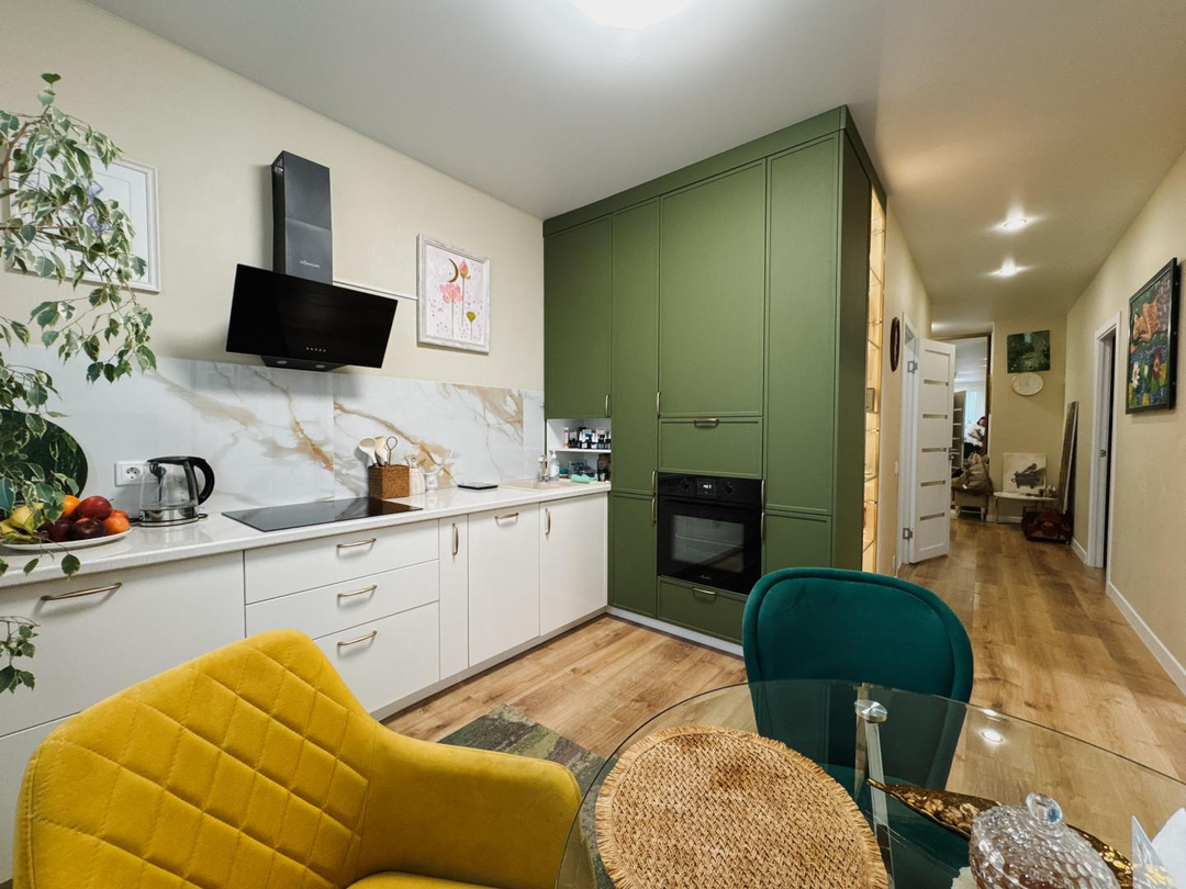 остается кухонный гарнитур с техникой и частично мебель