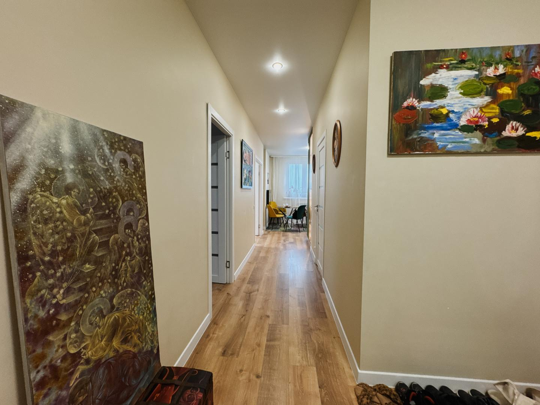 отличный евроремонт, натяжные потолки, ламинат в комнатах и коридоре, санузел в плитке