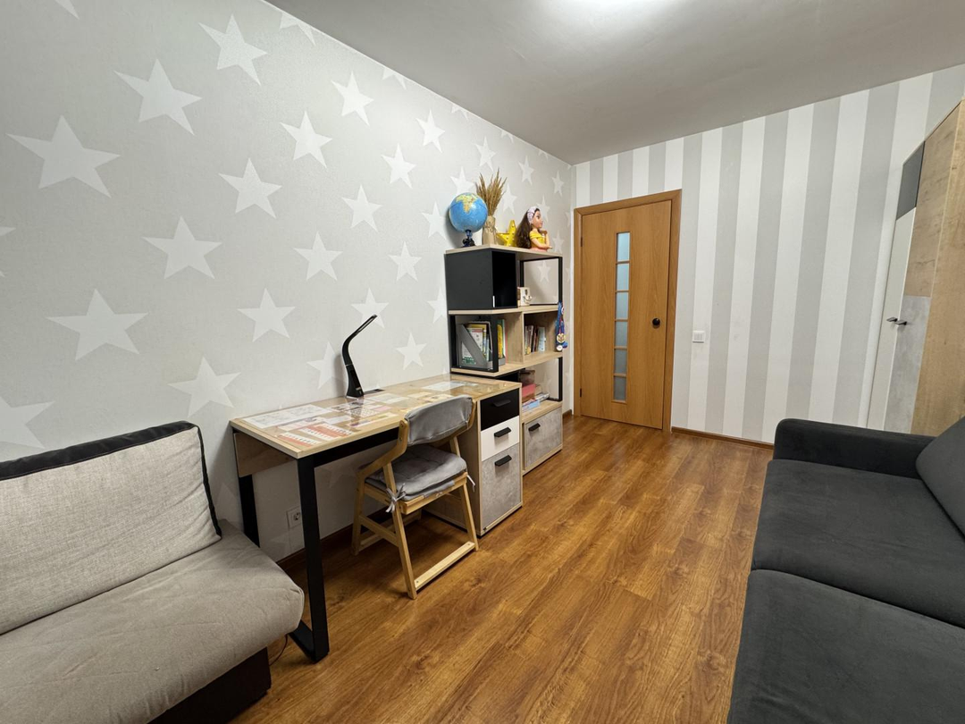 Ключевые преимущества:Район: Новый, быстроразвивающийся спальный район с современной инфраструктурой, тихий и спокойный для жизни. Ремонт: Косметический ремонт. Остается техника и мебель! Вы можете заехать и жить. Планировка: Изолированные комнаты (17 м2 и 12 м2) для комфорта всех жильцов. Просторная кухня 11 м' - место для семейных обедов.Первый этаж (высокий): Удобно для семей с детьми, пожилых людей и для загрузки вещей. При этом отсутствуют типичные недостатки — окна высоко от земли, светло и не сыро.Отличное содержание: Дом обслуживает хорошая управляющая компания. В подъезде сделан свежий ремонт — чисто и аккуратно.Адекватная и привлекательная цена за скорость
