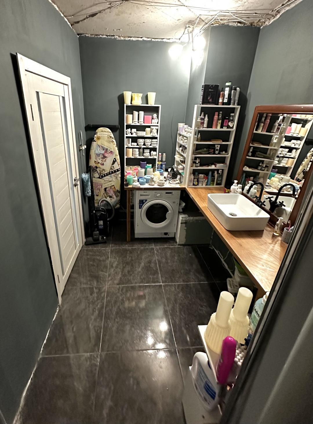 · Ванная: Большая совмещенная ванная комната, где без труда можно разместить стиральную машину и организовать удобную постирочную зону.
