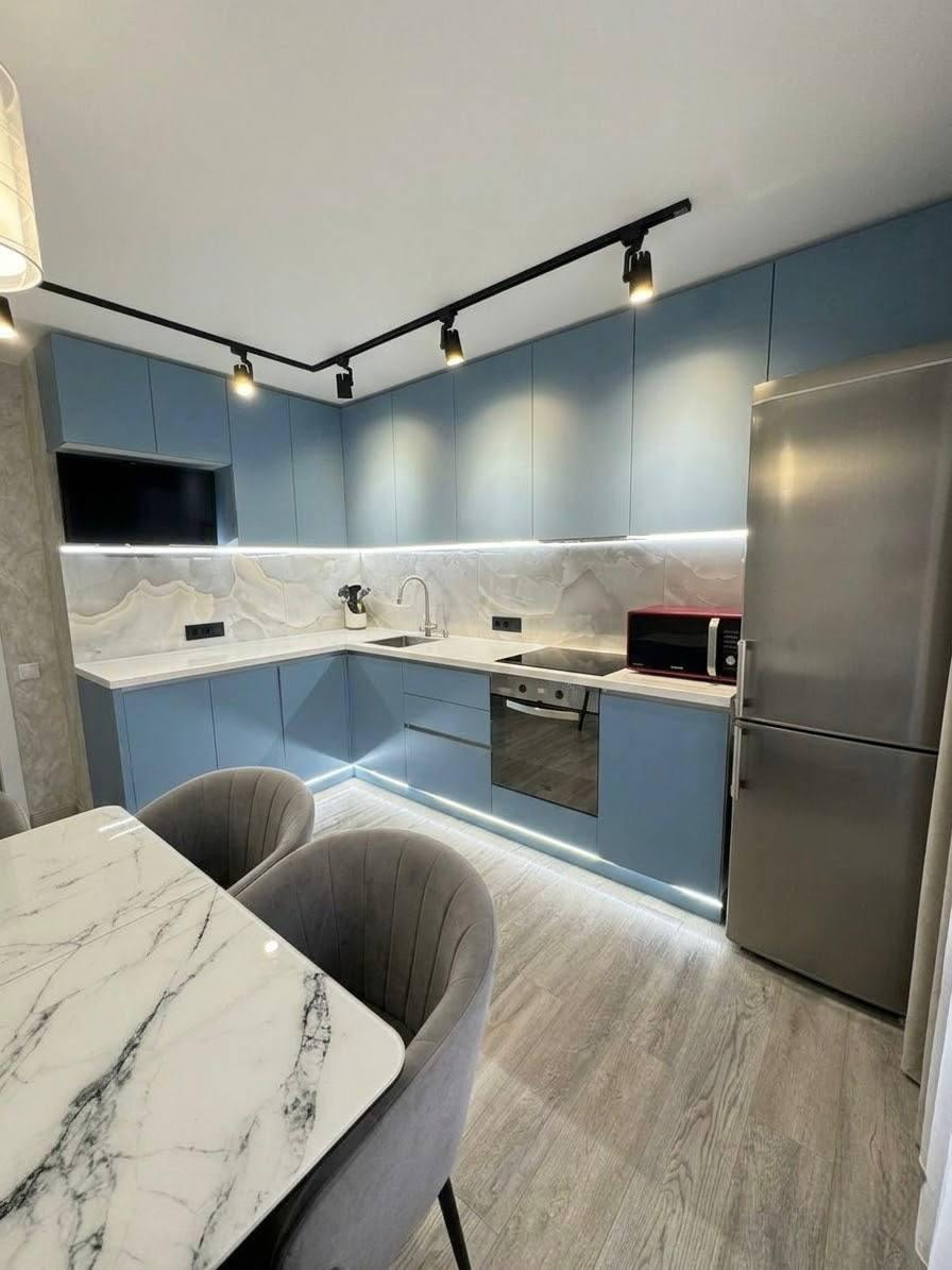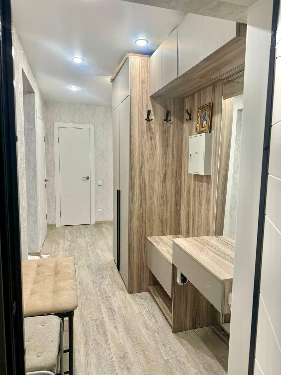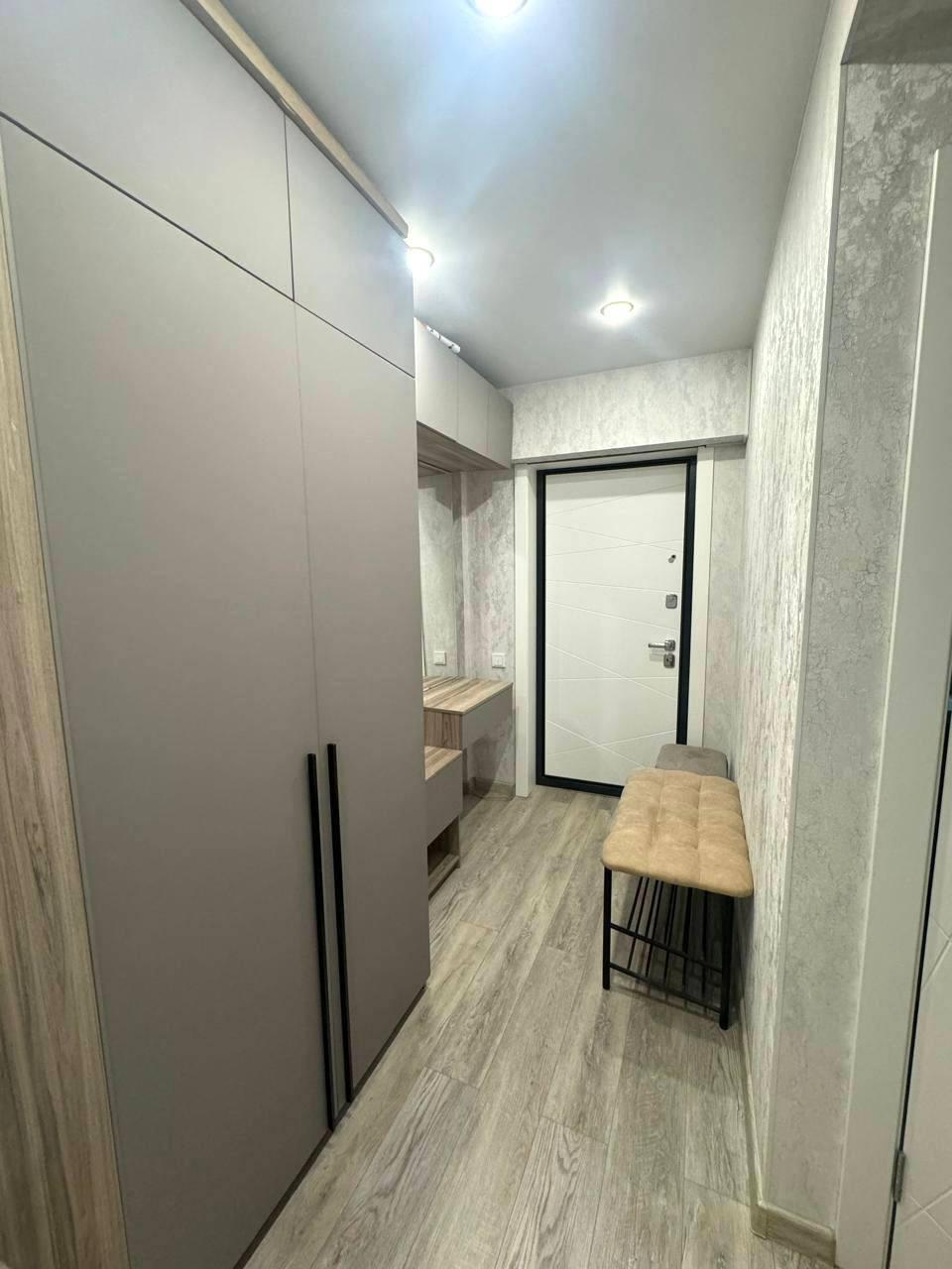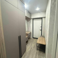 В квартире остается новый кухонный гарнитур с варочной индукционной панелью, вытяжкой и частично мебель. Так же обустроена гардеробная для хранения вещей.