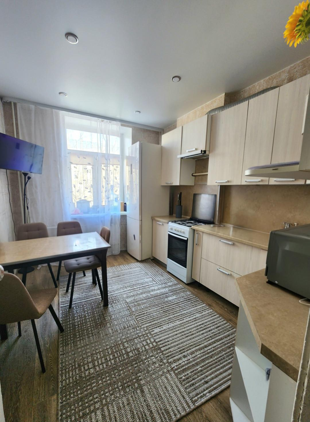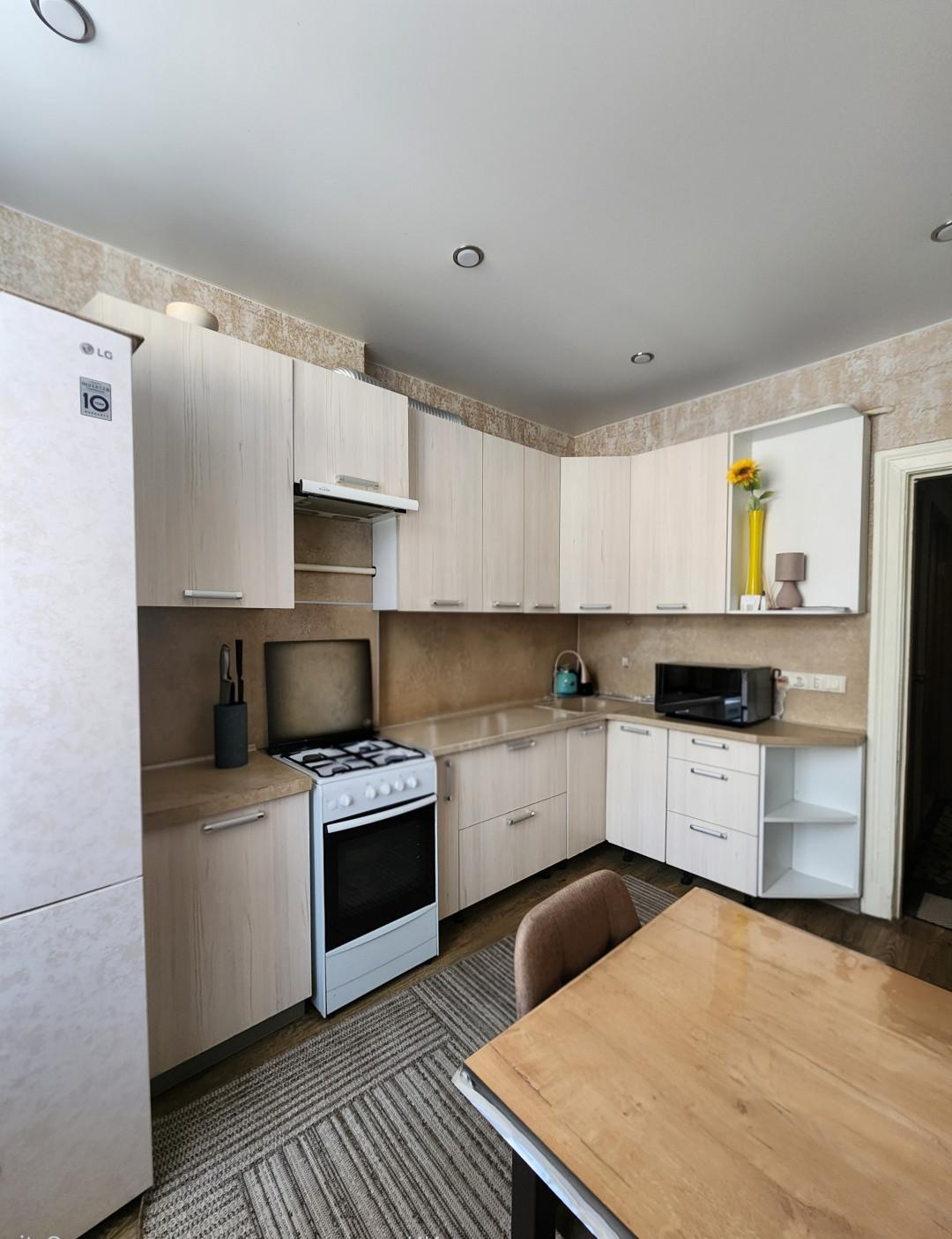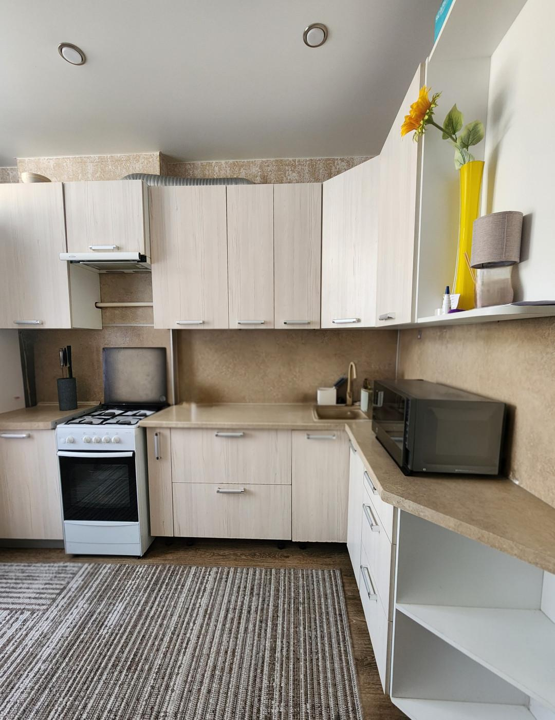 В квартире останется - кухонный гарнитур с газовой плитой.