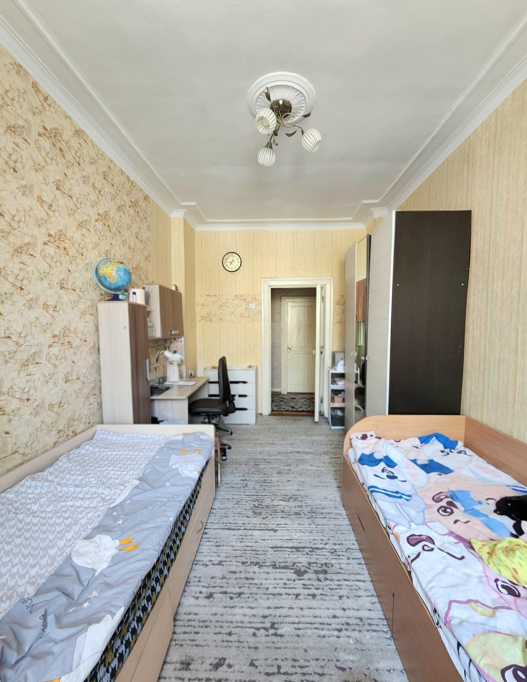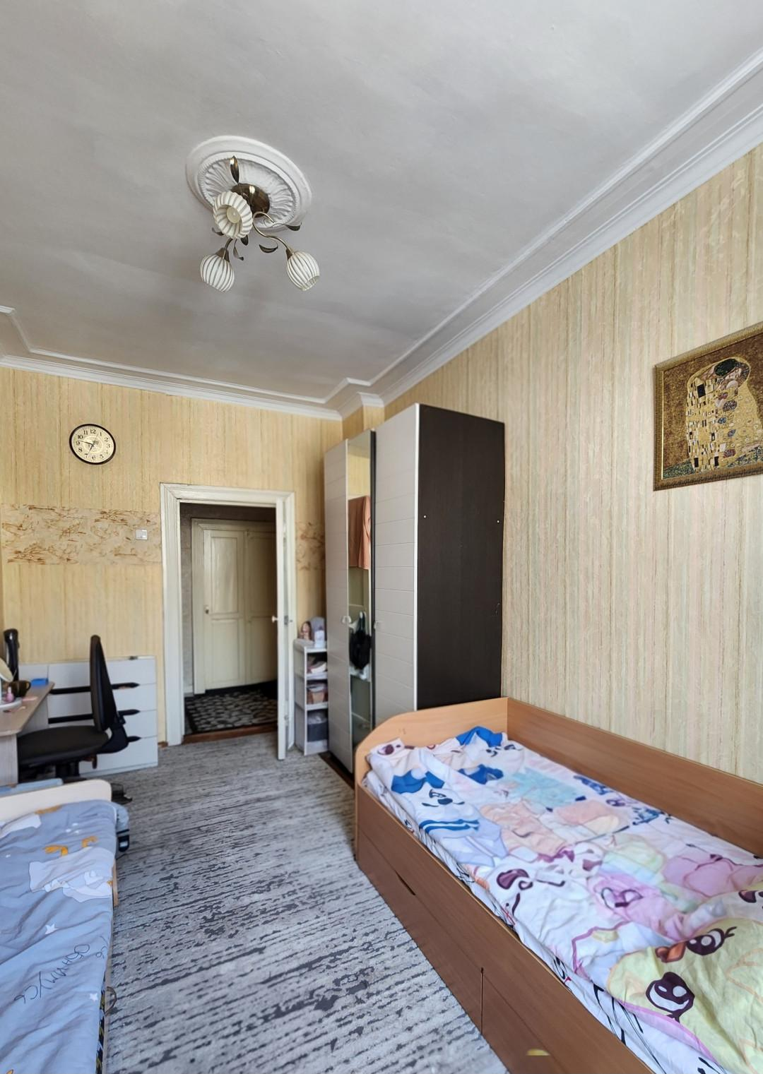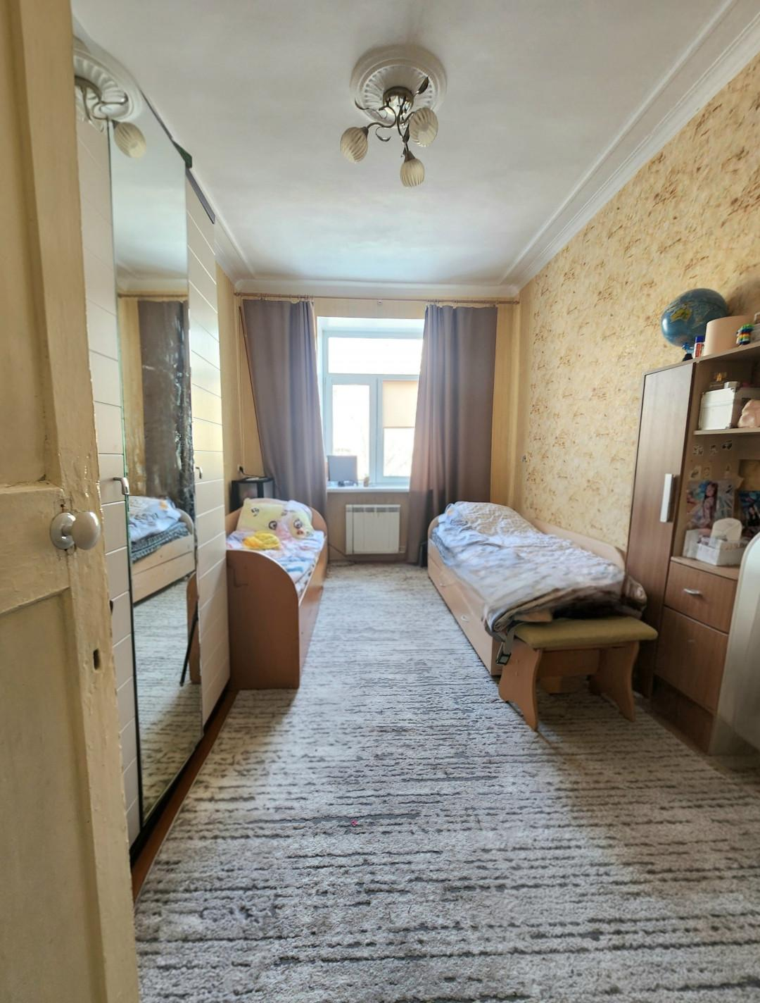 Квартира общей площадью 60.4 кв.м., этаж 2 в четырехэтажном доме. Площадь кухни - 8 кв.м., комнаты изолированы - правильной формы 18 кв.м. и 14 кв.м. Высота потолков 3 м.