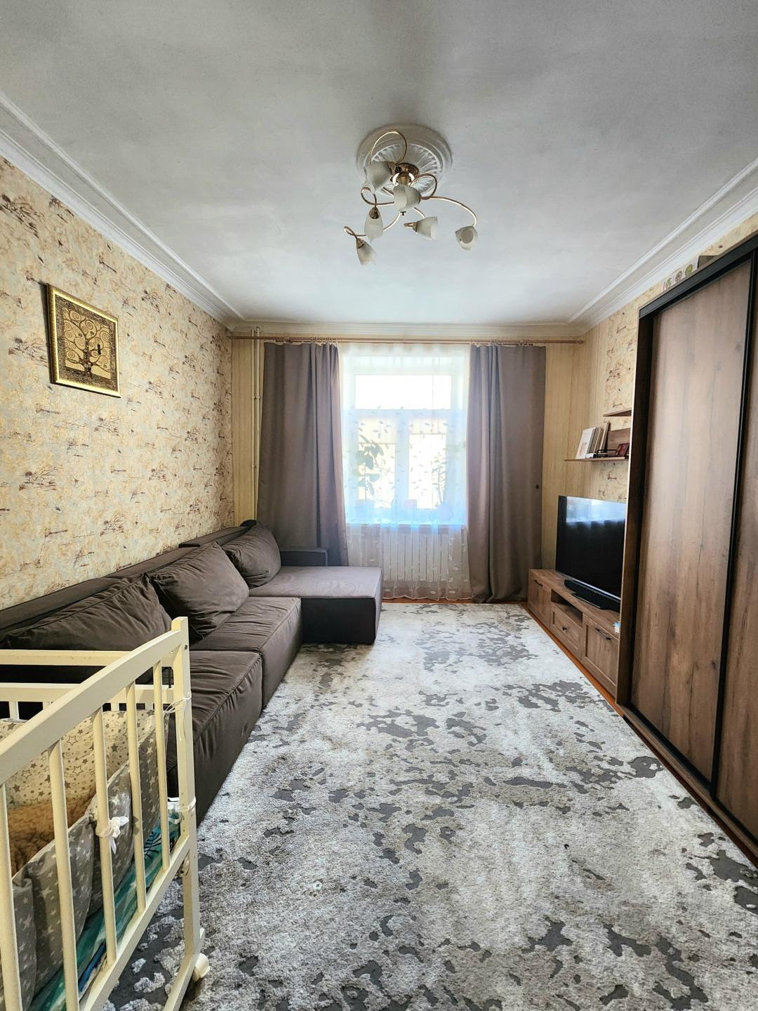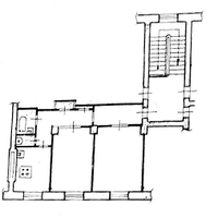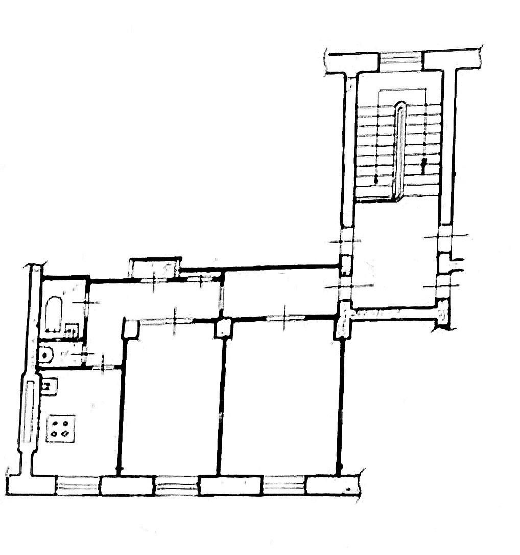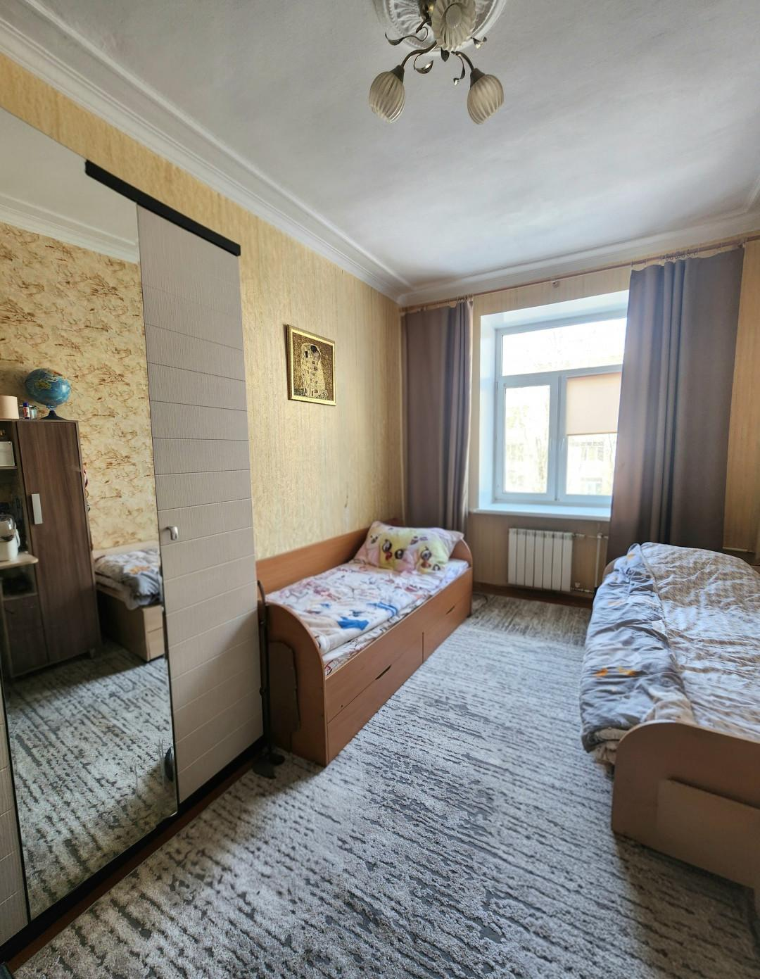 Квартира общей площадью 60.4 кв.м., этаж 2 в четырехэтажном доме. Площадь кухни - 8 кв.м., комнаты изолированы - правильной формы 18 кв.м. и 14 кв.м. Высота потолков 3 м.