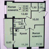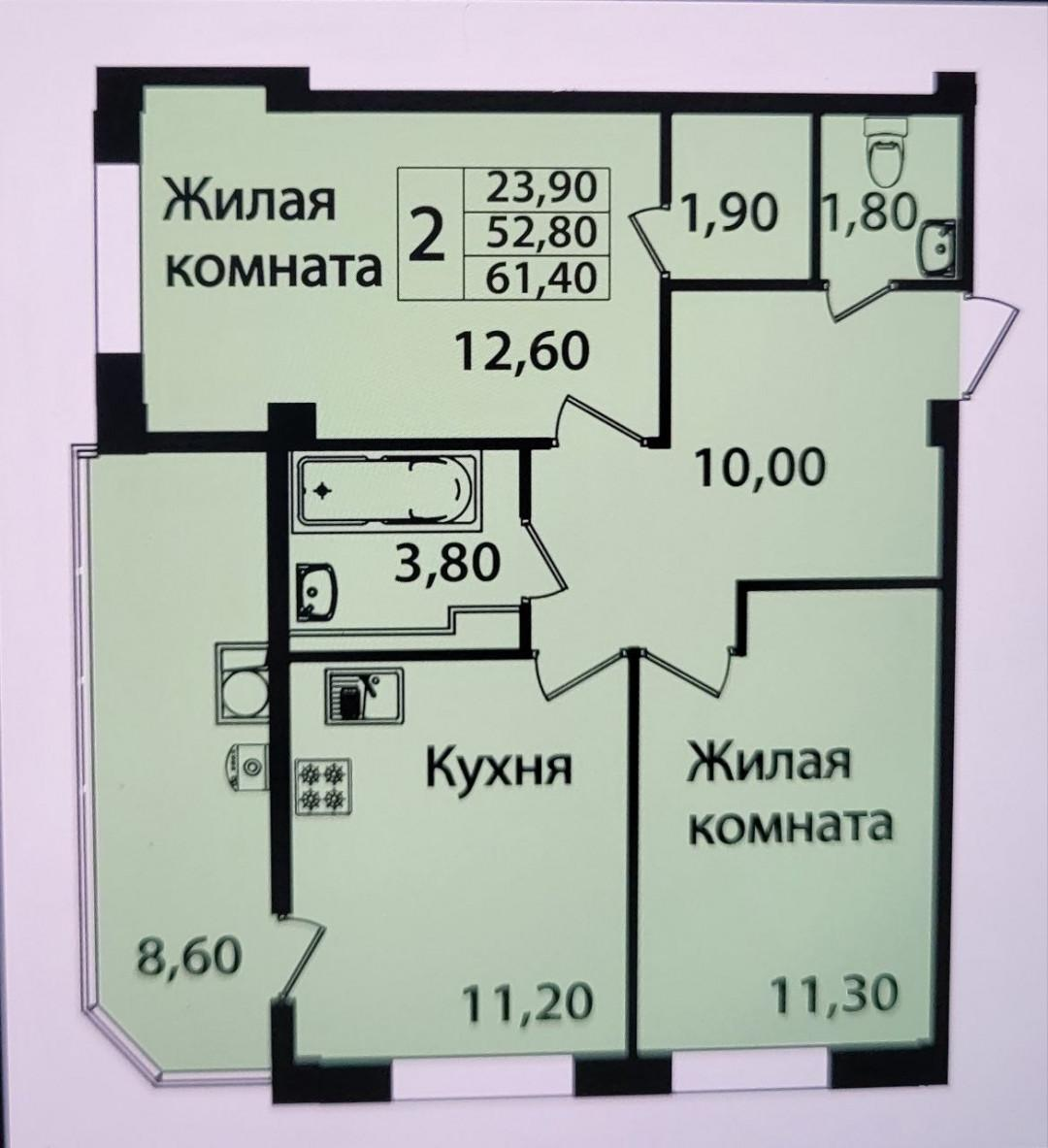 2-комнатная квартира 52,8 м² в комфортном районе города