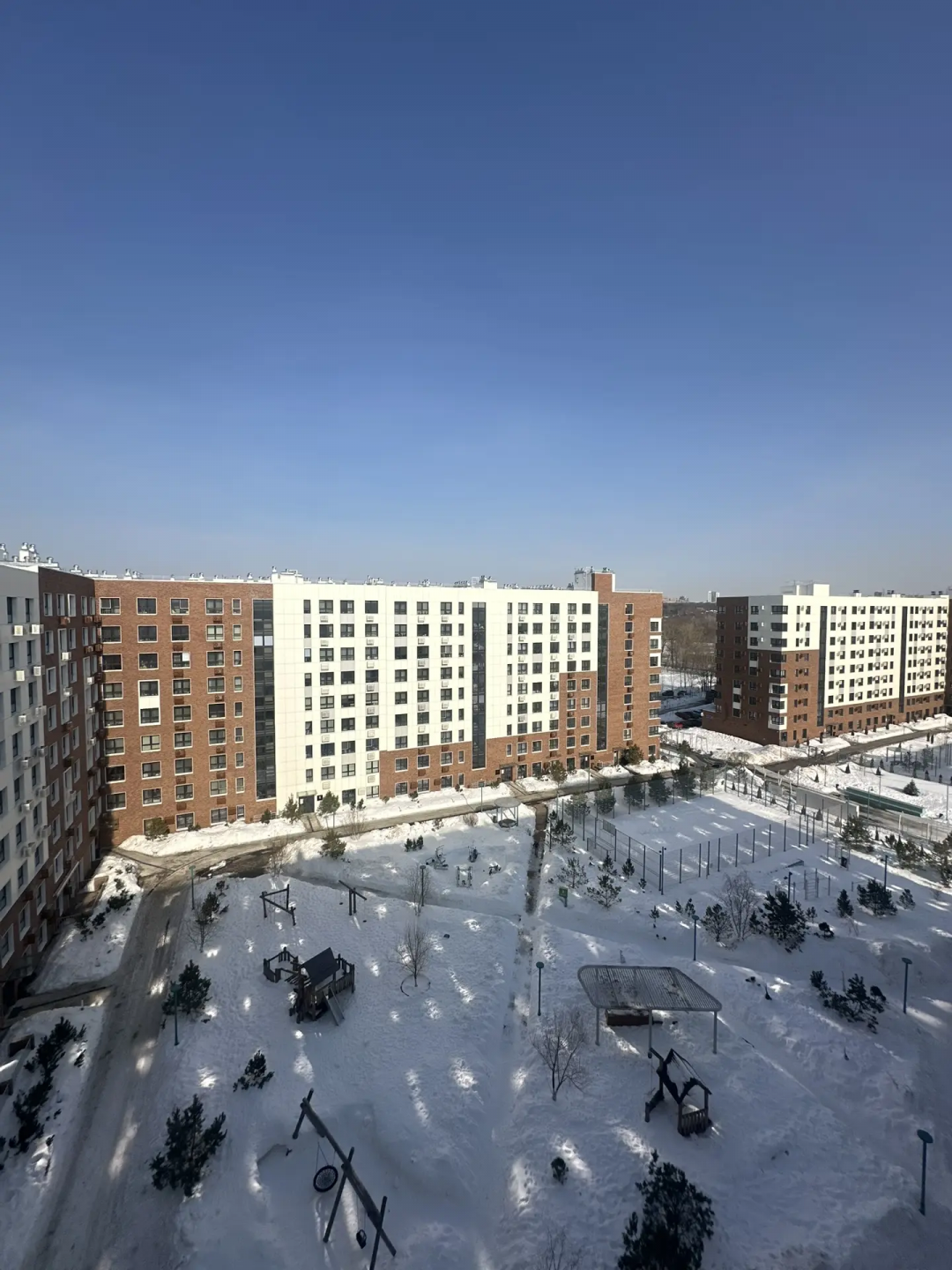 Состоит из 3 домов с закрытыми дворами-парками, вход в которые только у жителей. Дворы соединяются между собой живописными бульварами. Прогулочные зоны ведут в парк и к озеру.