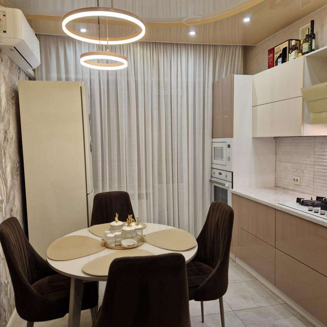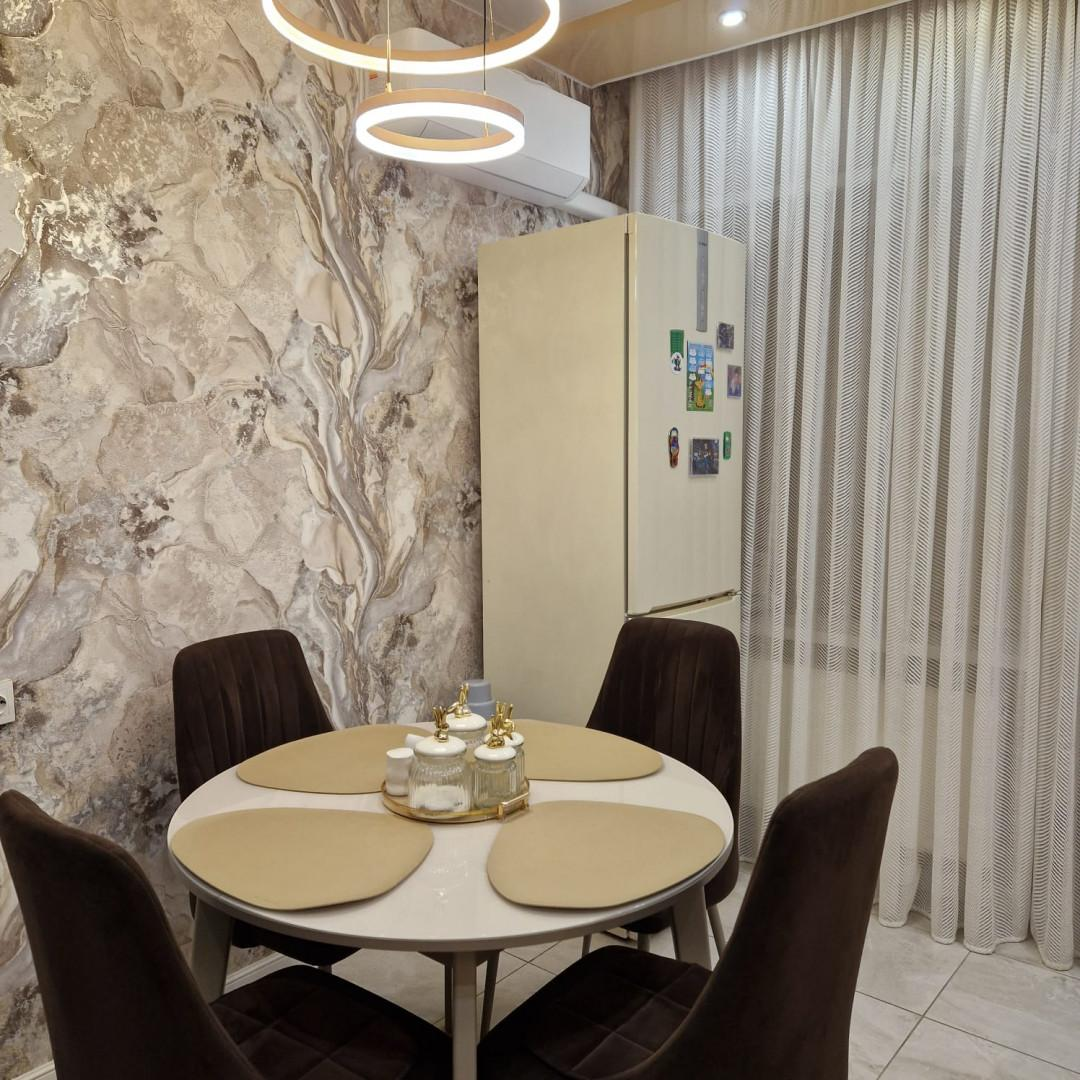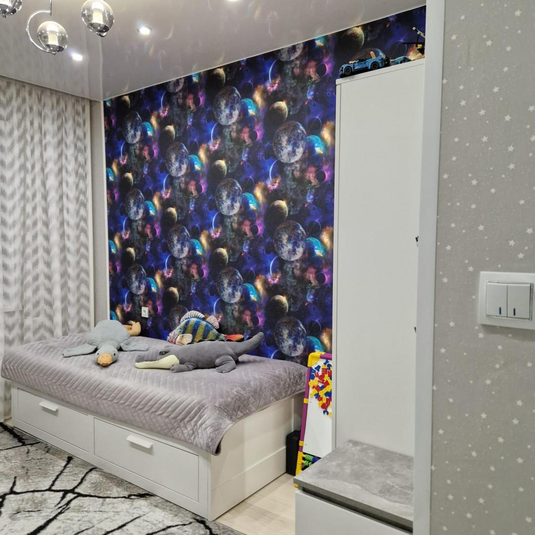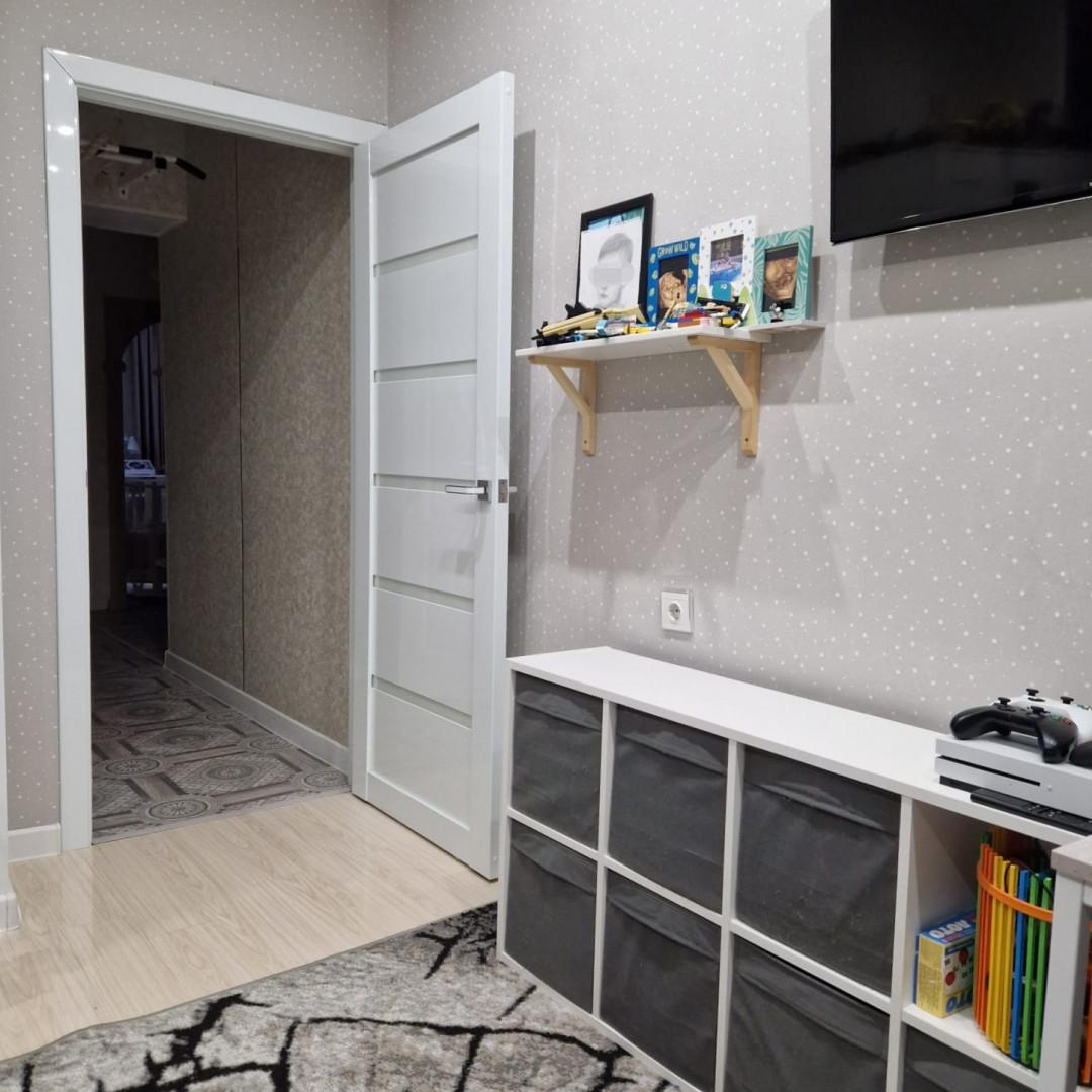 В квартире хороший ремонт, санузел раздельный, имеется комната подходящая для гардеробной. На всех окнах имеются жалюзи, лоджия застеклена. Окна выходят на две стороны, есть вид на двор с детской площадкой. Дом тёплый, соседи не шумные, спокойные.