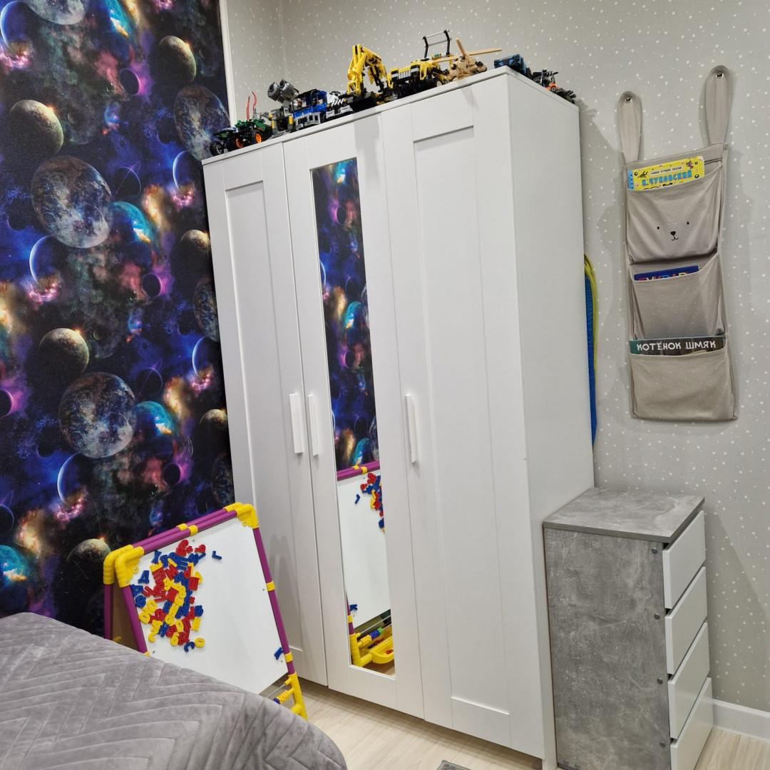 Остаются мебель и бытовая техника: холодильник, газовая плита, духовой шкаф, встроенная микроволновая печь, посудомоечная машина, кухонный гарнитур, стол и стулья, телевизор, два кондиционера, вместительный шкаф-купе, диван, две тумбы, стиральная машина. В детской комнате также остаются телевизор, тумбы, кровать, шкаф, настенные полки, письменный стол со стулом.