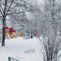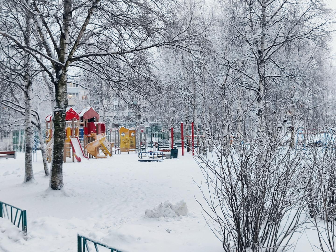 Большой двор с детскими постройками для игр и парковка, на которой вы в любое время найдете место поставить машину.