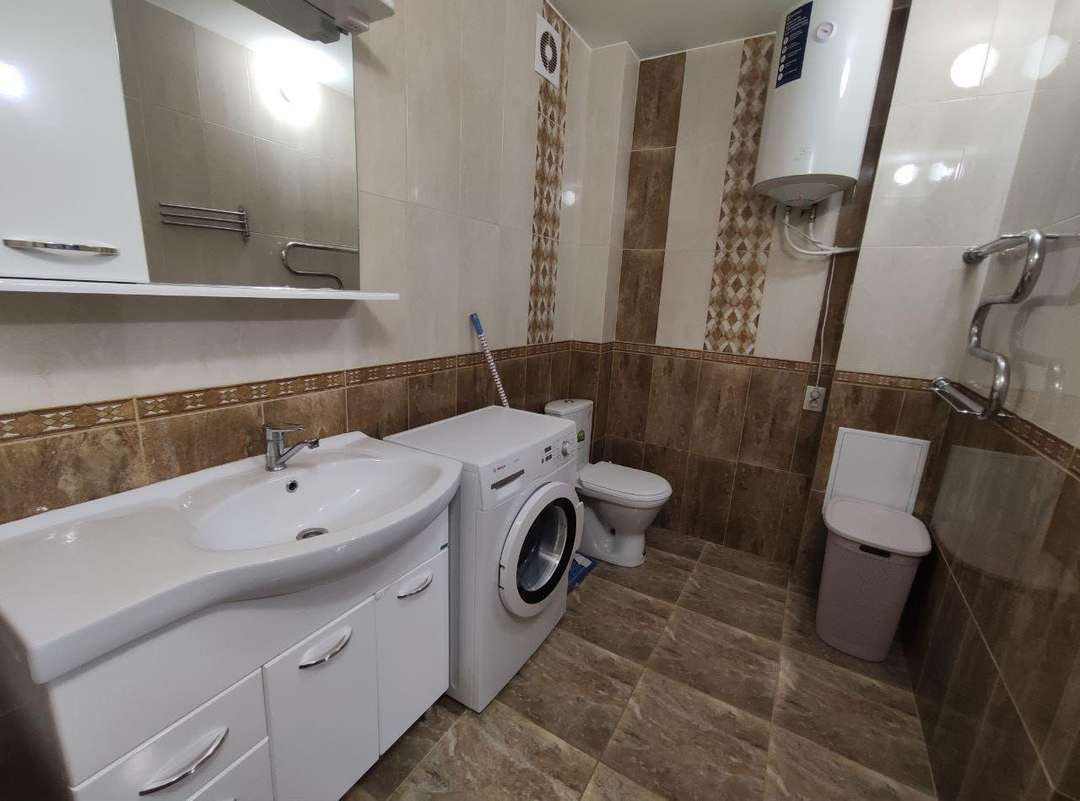 О квартире:Площадь: 60 м², 2 комнаты (свободная планировка).Дом: монолитно-кирпичный, 2019 г. постройки, 10 этажей.Этаж: 5/10 – оптимальная высота без лишнего шума и пыли.Ремонт: свежий, качественный, в отличном состоянии.Окна: панорамные, много естественного света.Кухонный гарнитур, водонагреватель, кондиционер остаются, остальная мебель и техника - по договоренностиСобственник: 1 взрослый, документы готовы к сделке.