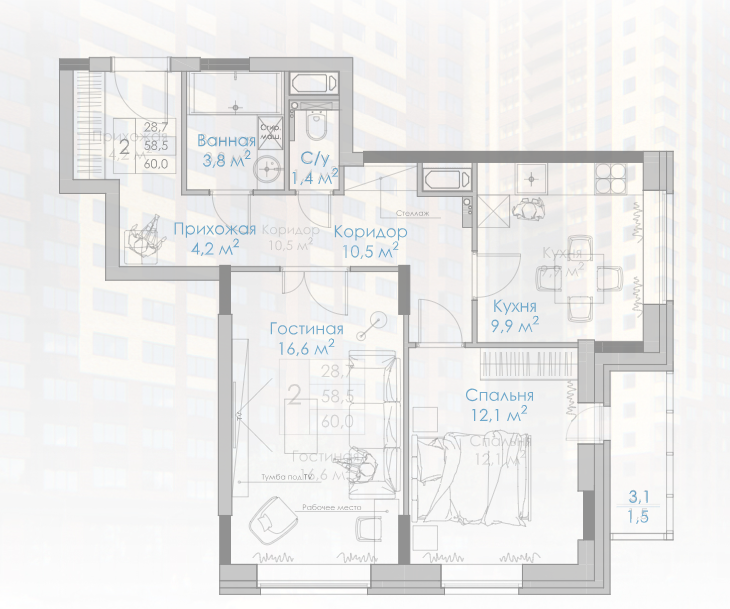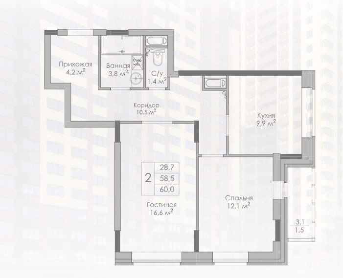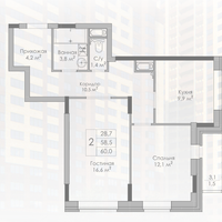 28,7 м²