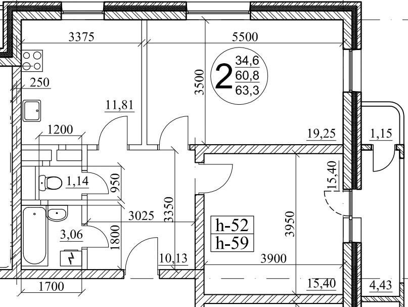 Удобная и практичная планировка - большая кухня (11,81м.кв.) и лоджия (4,5м.кв.), просторные комнаты (19,25м.кв. и 15,4м.кв.), с/у раздельный.