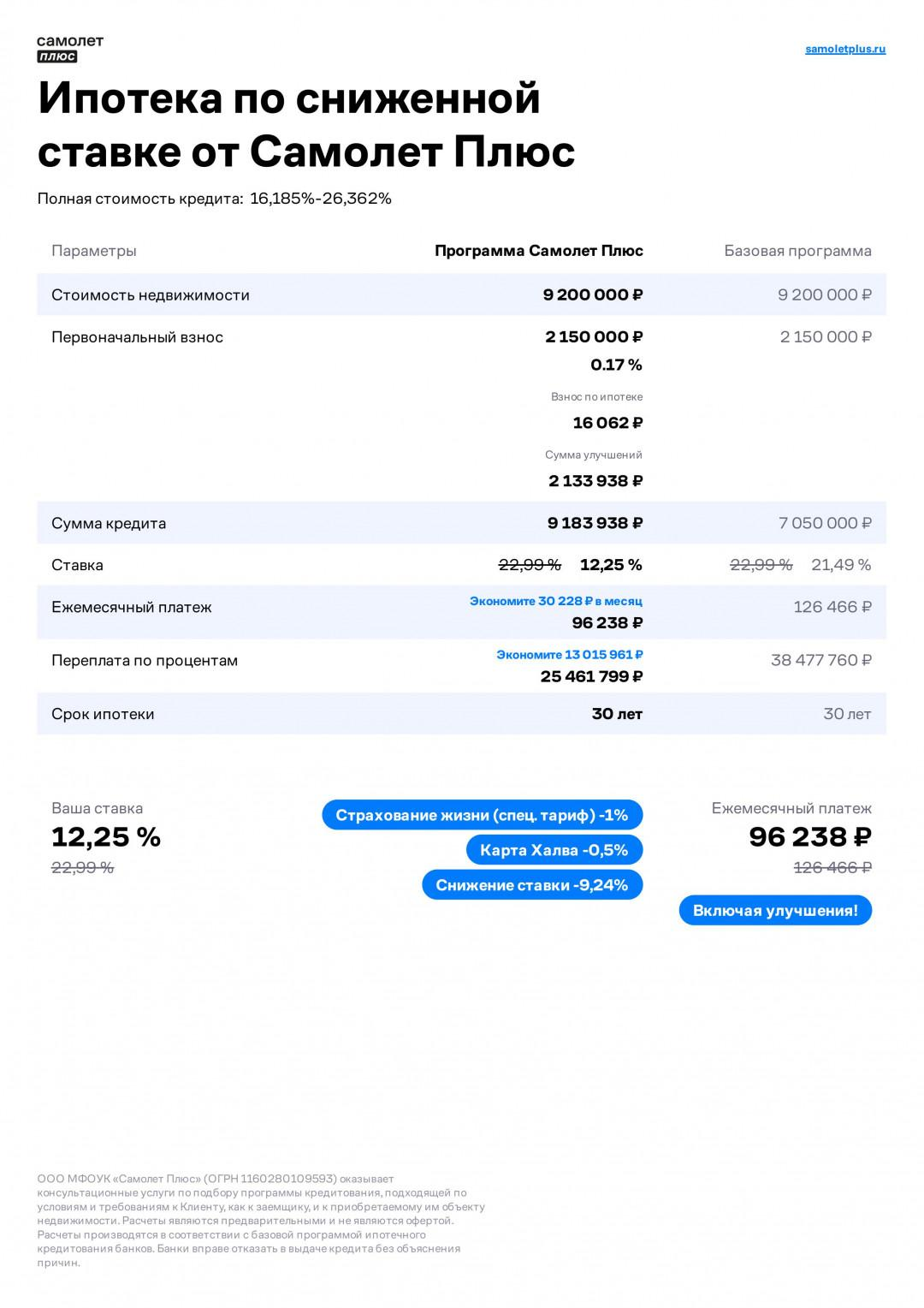 КВАРТИРА ПОДХОДИТ ПОД СУБСИДИРОВАННУЮ ПРОГРАММУ от компании Самолет Плюс, только для наших клиентов ставка от 12,25% (предварительный расчёт представлен в фото)