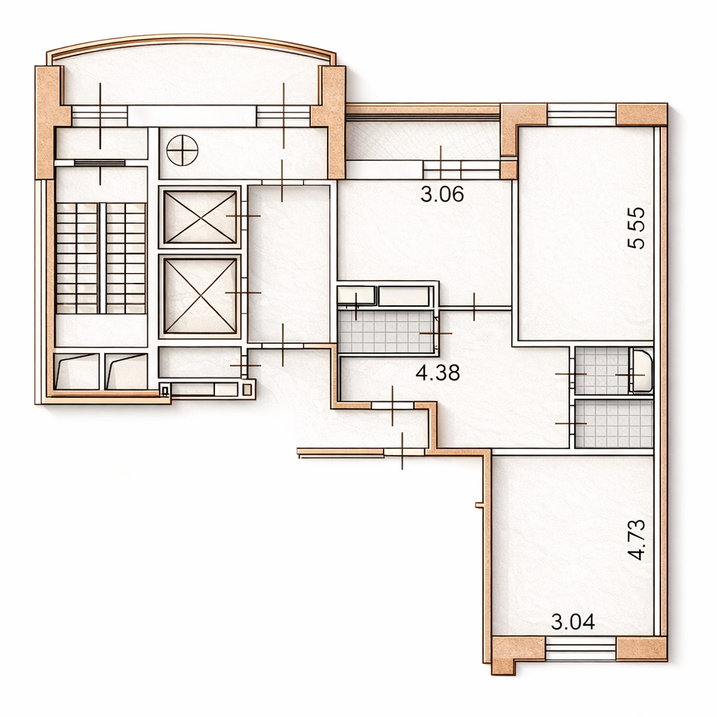 Окна кухни, лоджии и одной из комнат выходят в зелёный двор, обеспечивая высокий уровень тишины. Дополнительно предусмотрены две кладовые: одна в квартире, вторая — в тамбурном коридоре.