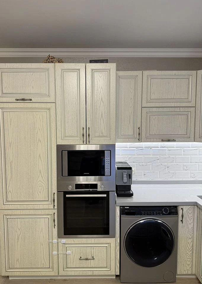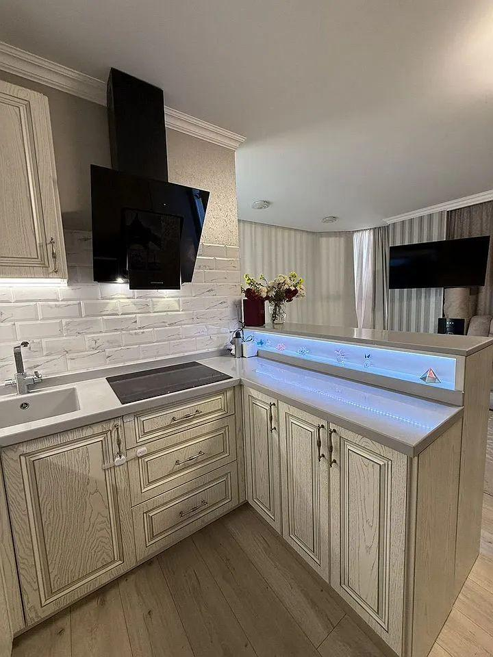 Диван - полноценная кровать с функцией реклайнера с электрическим приводом. Встроенная техника фирм Воsh, Sаmsung, встроенный холодильник и посудомоечная машинка с управлением wi-fi.